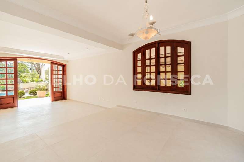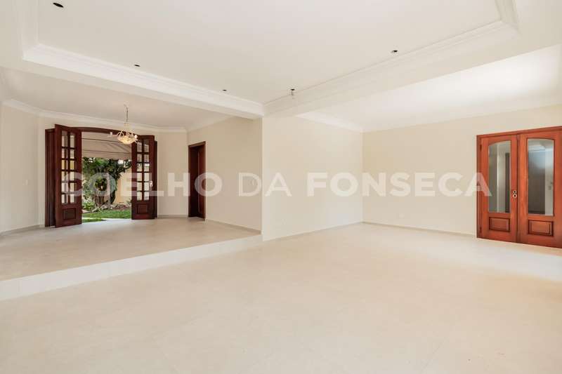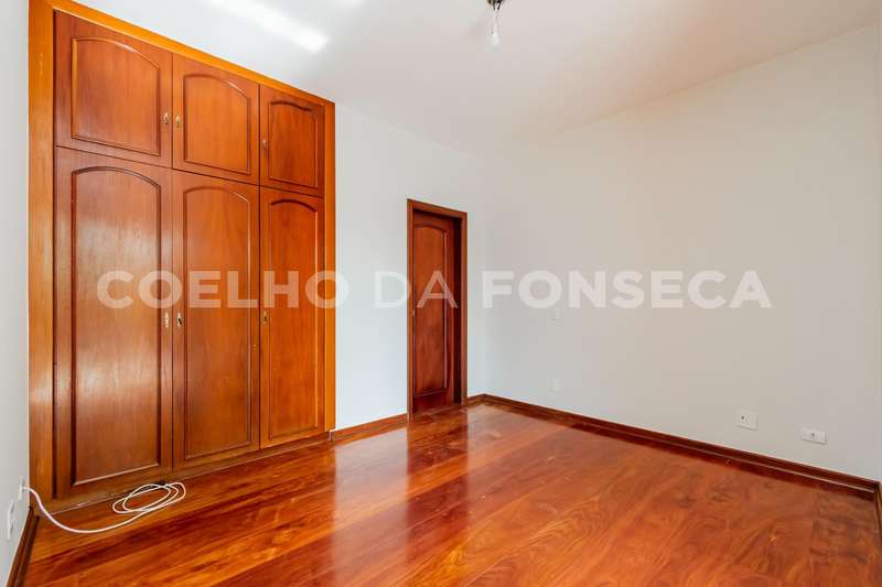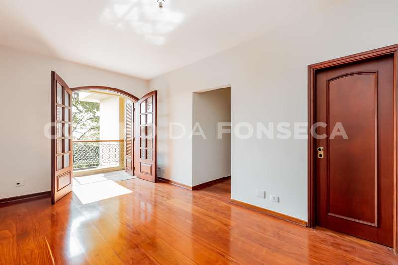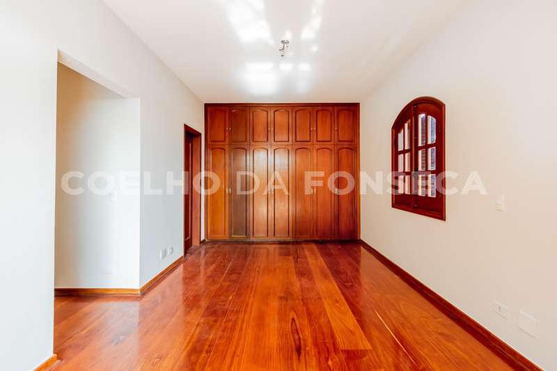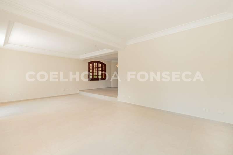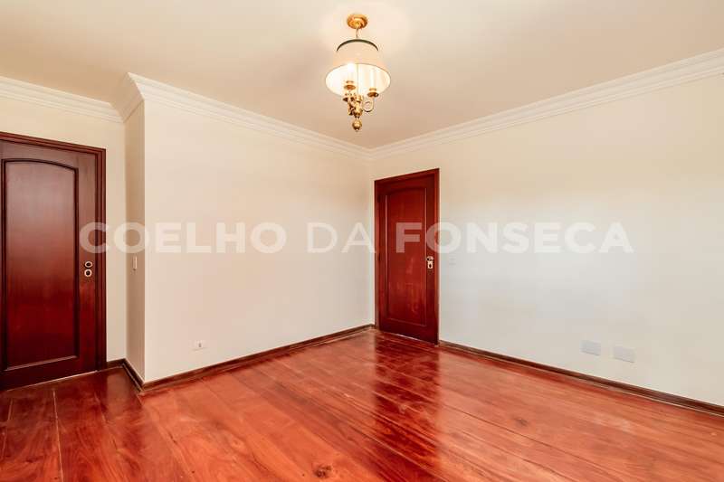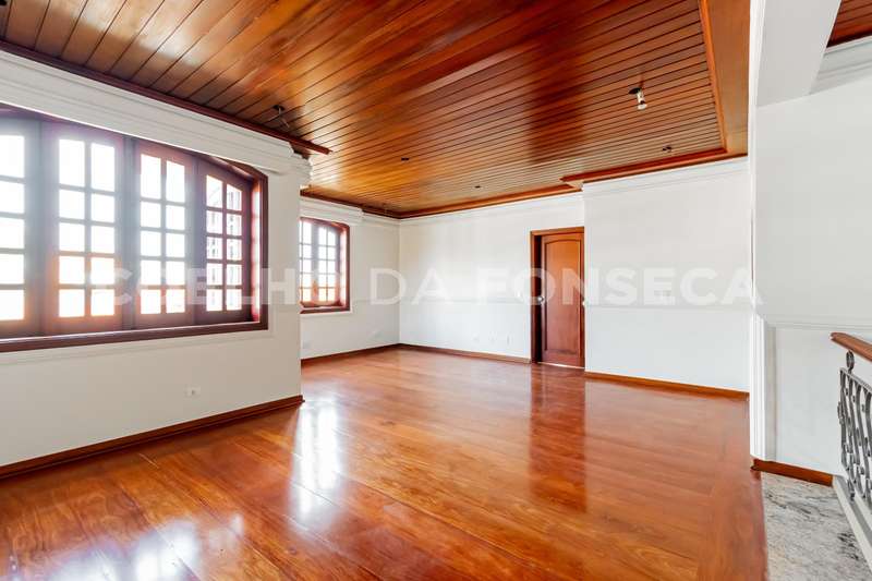 Casa com 04 suítes à venda no Residencial 06, em Alphaville. A casa possui quartos amplos, piso de madeira nobre nos quartos e salas. As salas são integradas com a área de lazer e com o paisagismo da casa.