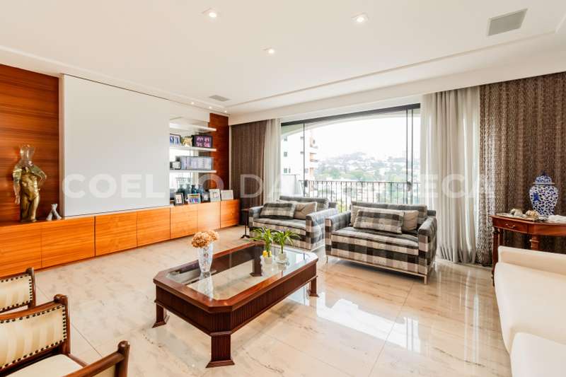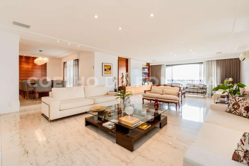 Amplo apartamento, reformado, com vista livre para o verde do bairro. Possui living com varanda, sala de jantar, sala de almoço e home theater, também com varanda. Área íntima com quatro suítes, sendo a suíte master com hidromassagem. Este empreendimento é um ícone da região, oferecendo lazer completo: piscina coberta aquecida e descoberta, spa com hidromassagem, sauna seca e úmida, quadra poliesportiva, playground, salão de festas e biblioteca. Além disso, há salão de festas, playground e jardins. Agende sua visita agora!