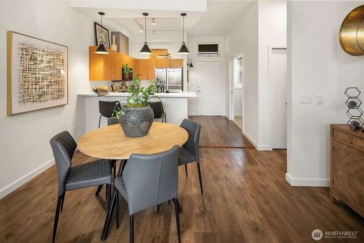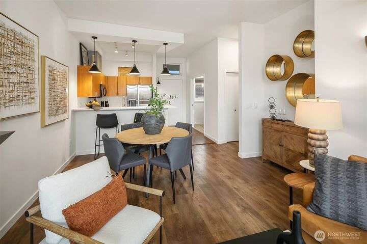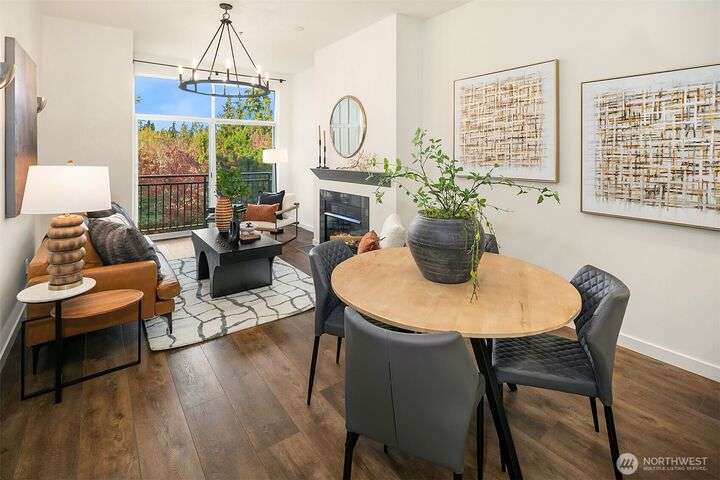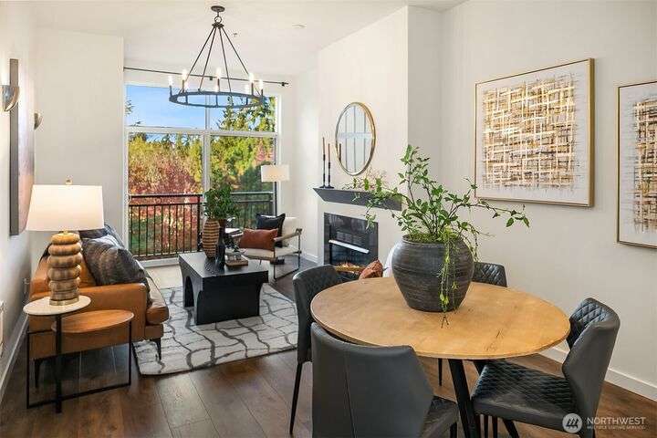 Stunning Penthouse Living in Downtown Kirkland. Experience modern elegance in this penthouse condo in the vibrant heart of Kirkland. Enjoy clean lines and contemporary design with a spacious open floor plan, featuring a cozy fireplace and dedicated space for a desk or den. The chef's kitchen boasts new quartz countertops and appliances. With fresh flooring and custom lighting throughout, this unit is truly inviting. Bonus amenities include secured parking, a pet-friendly HOA with no rental cap, and the option for short-term rentals. Take advantage of easy access to the waterfront, dining, shopping, and trails. Nestled just blocks from the Google campus, enjoy convenient access to 405 and Eastside tech hubs. Affordable luxury awaits!