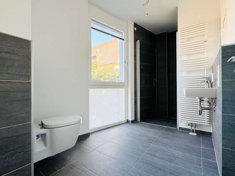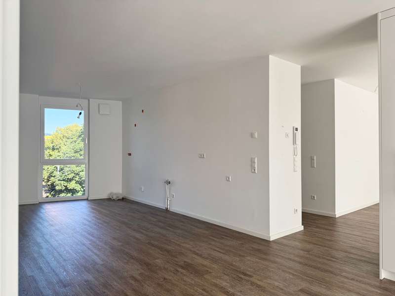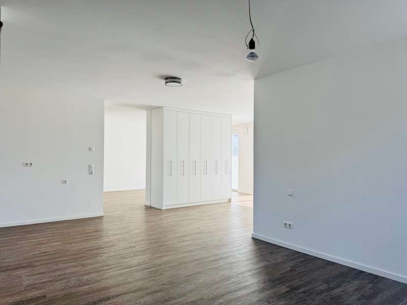 Barrier-free 2-room apartment with expansion potential for up to 2 further rooms (4-room apartment) If you want to enjoy the benefits of being close to the city center every day, your dream could soon come true. This spacious apartment, built in 2017 and in mint condition, offers a living space of approx. 110 m² and impresses with its open and well thought-out floor plan. The high-quality furnishings meet high standards and stand out with an excellent combination of comfort and functionality. The property is located in a KfW Efficiency House 70, which impresses with its barrier-free design and a disabled-accessible elevator in the stairwell. The elevator has the advantage of stopping directly in the apartment and also offers additional access via the stairwell. This ensures maximum flexibility and convenience when accessing the apartment. The spacious living/dining area with an open-plan concept is fitted with vinyl parquet flooring. You can choose your dream kitchen yourself and have it fitted. The floor-to-ceiling windows (triple glazing in plastic-aluminum) flood the rooms with plenty of natural light and are fitted with electronically controllable external blinds that can be adjusted to suit individual requirements. The apartment comprises a total of 2 rooms, including a bedroom and two high-quality bathrooms. The first bathroom has a shower, WC, washbasin and washing machine connection and is fitted with a window to ensure sufficient ventilation and natural light. The second bathroom is additionally equipped with a bathtub and also has a shower, WC, washbasin and window. A spacious balcony with a separate storage room and away from the street invites you to relax outdoors. Underfloor heating, supplied by district heating, ensures pleasant temperatures all year round. The controlled ventilation system further optimizes the indoor climate and contributes to energy efficiency. The apartment also includes a cellar room and an underground parking space, which offers convenient and secure parking. It is also larger than average so that additional items can be stored. Communal areas such as bicycle and garbage can boxes round off the space on offer. Additional security is provided by an intercom system with video function, which offers a high standard of access control and increases living comfort. This apartment is ideal for couples or singles who value a central location and high-quality fixtures and fittings. According to the partition plan, the apartment was planned as a 4-room apartment. However, the seller preferred an open and spacious room concept, which is why a 2-room apartment was created by removing various walls. The monthly house fee is approx. 284.00 €. This includes the maintenance reserve for house 3 and the underground parking garage. The combination of modern construction methods, energy-efficient standards and a well thought-out room layout make the property ideal for discerning residents looking for a long-lasting home. For further information or to arrange a viewing appointment, please do not hesitate to contact us. Please send us a general financing confirmation in advance. Experience the numerous advantages of this unique living opportunity for yourself.