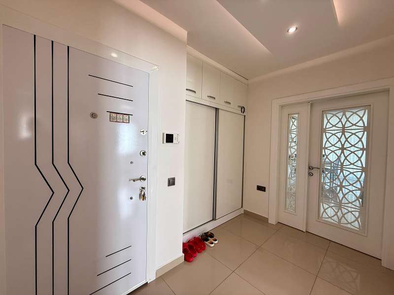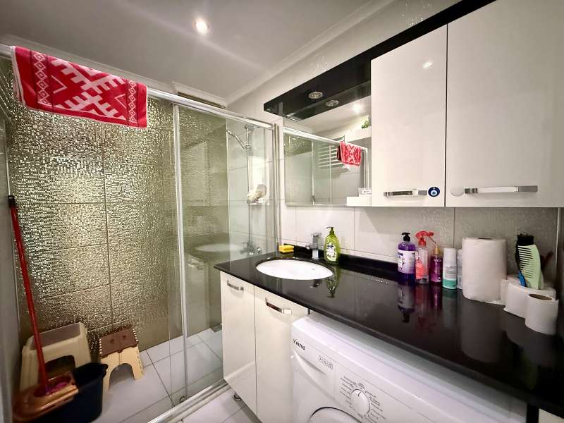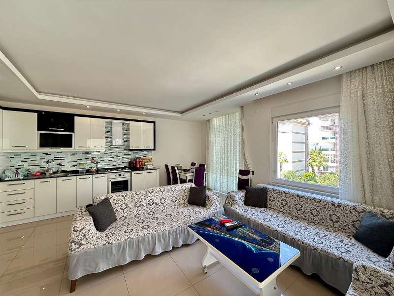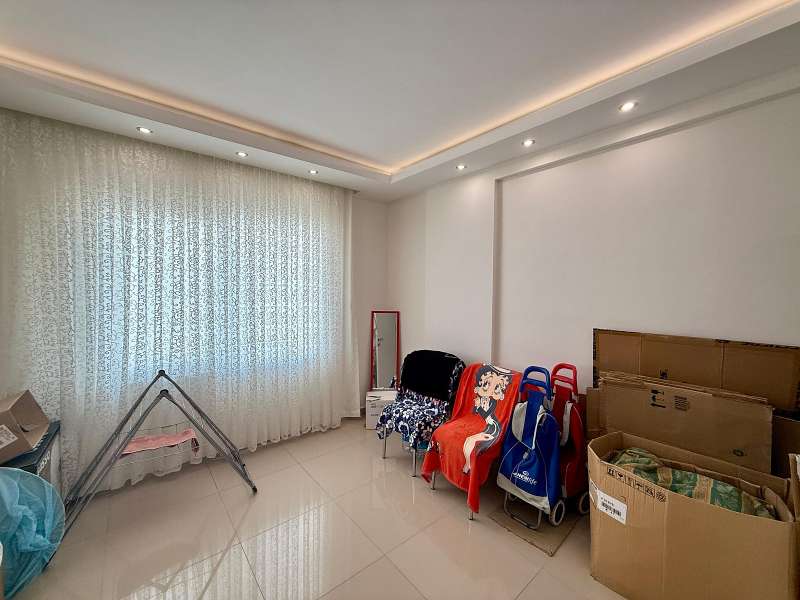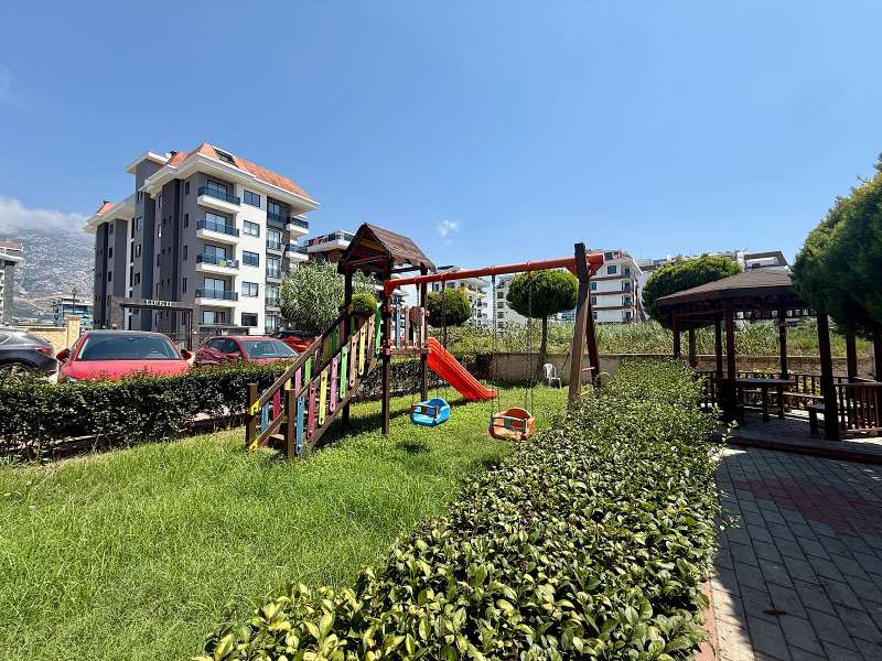 The apartment is situated in a two-block complex in Alanya Kestel. It offers amenities such as an outdoor swimming pool, children’s playground, barbecue area, elevator, and parking.