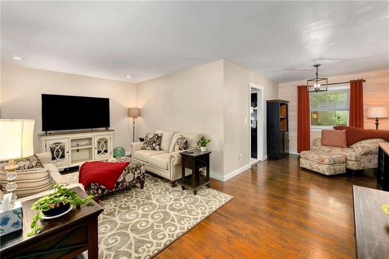 Only 6 miles from the stadiums!! Welcome home to this beautifully renovated ranch with a double-sized lot that backing to greenspace and the golf course! Enjoy the peaceful back deck for most of the year with a yard ready for you to make your own oasis! The main level features a spacious updated kitchen with a hearth room, hardwoods in the living room and 3 bedrooms, 2 updated bathrooms and lots of natural light! Downstairs, a 4th bedroom and plenty of space available for storage and finishing additional living space around the 2nd fireplace. Outside, fresh landscaping creates the curb appeal you desire for entertaining. Freshly painted interior, new main pipe, new landscaping, updates and unique features will be perfect for any buyer! Simply move in and enjoy life! Call to schedule your showing today!! Just in time for football season!!