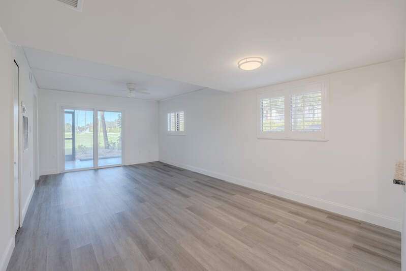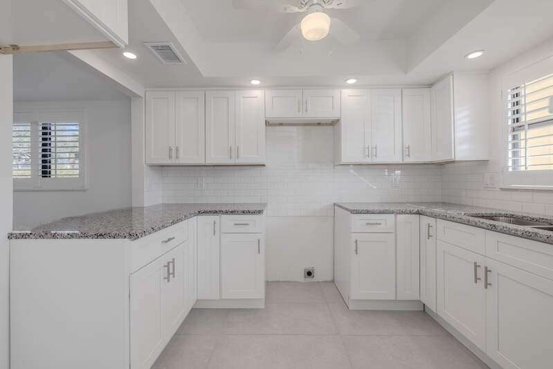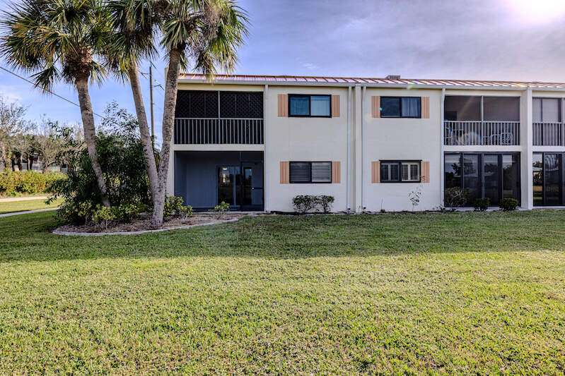 Low HOA fees, weekly rental allowed and close to the beach make this the perfect home. This first-floor corner unit has recently undergone over $65,000 in floor to ceiling renovations with nearly 100% of the property's infrastructure and interior being replaced. Details: The kitchen: the brand new white shaker-style cabinets offset by beautiful granite countertops, stainless appliances, inclusive of new plumbing, sink/disposal, and floor. The bathrooms; Include new updated vanities with brushed nickel finishes quartz counters, new tub/shower, toilets, and water heater. The living & bedroom areas: Newly installed luxury vinyl flooring throughout highlight the neutral and soothing color scheme. The living and bedrooms also include new electric, paint, doors, base boards, ceiling fans and closets. The lanai; Freshly painted, with new tile flooring Safety & security was a top priority for this home, including impact windows throughout and why the current owners insisted on adding a new impact slider with built in shades and hurricane panels. This aids in the overall quiet of the home. The electrical panel has been replaced. All renovations were professionally completed including all the required permits and inspections. You can be confident in the quality of the work that was done as it shows in the details. The community has a newly renovated pool, newly built pool house and tennis courts, making it perfect for full-time living or as a weekly rental for vacationers. Small pets are allowed so that you can bring your furry friends along. Plus the HOA Fees are low!! With easy access to Fort Myers and Bunch beach as well as Sanibel Island, this property is the perfect choice for anyone looking for the Florida lifestyle. Don't wait any longer! Make this stunning corner unit yours todayA. No damage to the complex or unit from Milton.