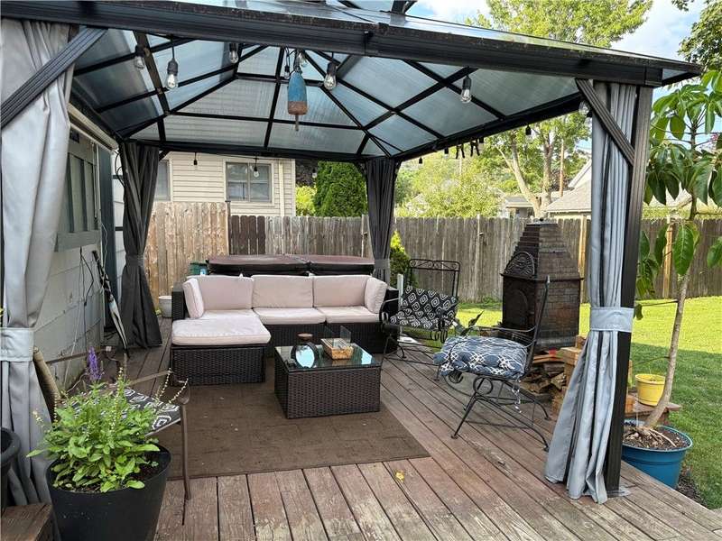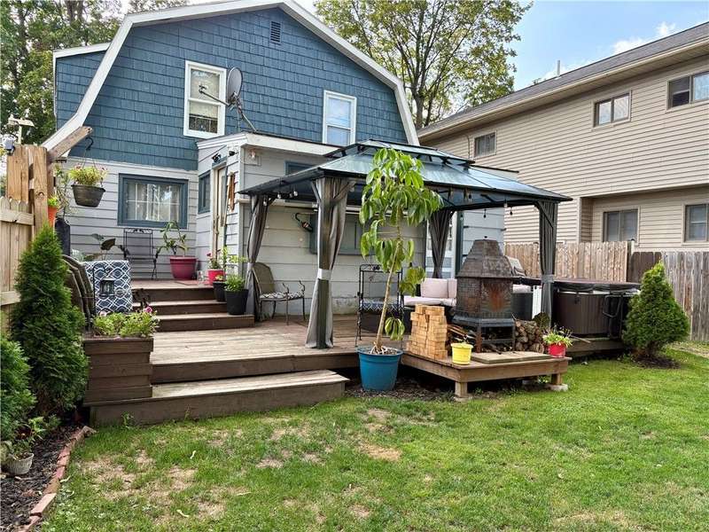 Perfect for first-time buyers! This charming 3 bedroom, 1 bath home has been freshly painted and features a main floor with great flow for comfortable living and hardwood floors. Bedrooms upstairs are good-sized, one w/a walk-in closet. Updated bathroom. Cute front porch and fully fenced yard. Backyard is ideal for relaxing or entertaining with a gazebo and hot tub. Downstairs, the basement includes a cozy rec room, laundry area, and plenty of extra storage space - everything you need in one inviting home. There is a small one car garage with a brand new roof!
