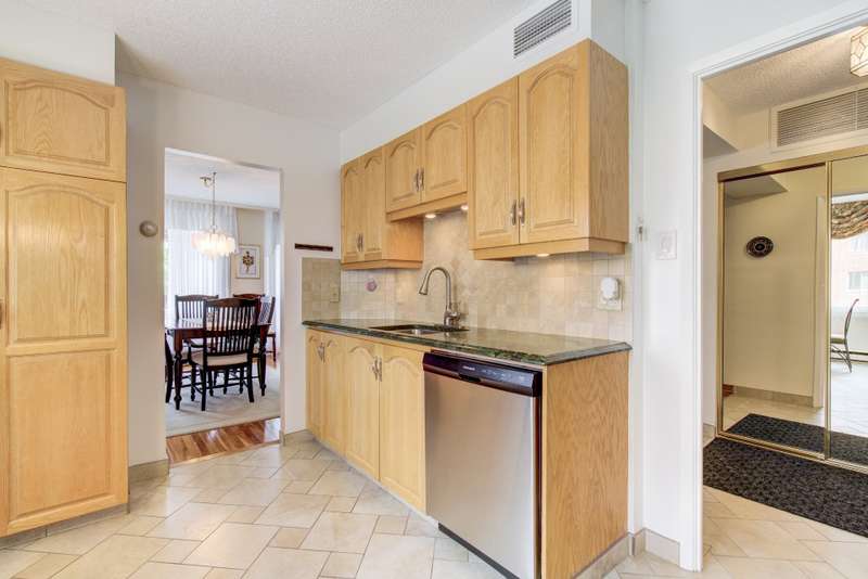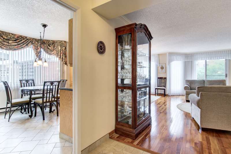 Bright & spacious corner unit condo offering 2 bedrooms & 2 bathrooms, including a large master bedroom with a walk-in & private ensuite bathroom. The kitchen features high-end finishes with granite countertops & elegant wood cabinetry. It includes garage parking & indoor storage as well. Enjoy the peaceful ambiance from your private balcony overlooking the quiet courtyard. The building is exceptionally well located & offers top-tier amenities including a gym, sauna with showers, & a heated outdoor inground pool. Accessibility is a priority with elevators & ramps. A perfect combination of comfort, convenience, and luxury.