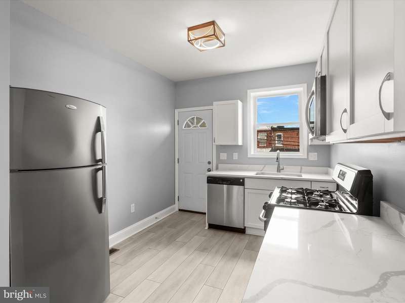 Completely renovated and full of charm, this stunning brick and stone front rowhome is move-in ready! Step onto the inviting front porch and into a beautifully designed interior featuring light hardwood floors, soaring ceilings with recessed lighting, and a decorative fireplace with classic brick surround and mantle. The open-concept main level includes spacious living and dining areas, a convenient powder room, and a gourmet kitchen equipped with stainless steel appliances, Quartz countertops, shaker-style cabinetry, and access to a fully fenced rear yard, perfect for outdoor entertaining. Upstairs, three sun-drenched bedrooms and a hall bath offer generous space, updated fixtures, and continued hardwood flooring throughout. The lower level presents endless possibilities; transform it into a media room, game room, or guest suite. Ideally located just minutes from downtown Baltimore with easy access to shopping, dining, entertainment, and major commuter routes, including I-95, US-1, and I-895. A must-see home blending modern updates with timeless appeal!