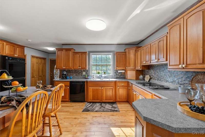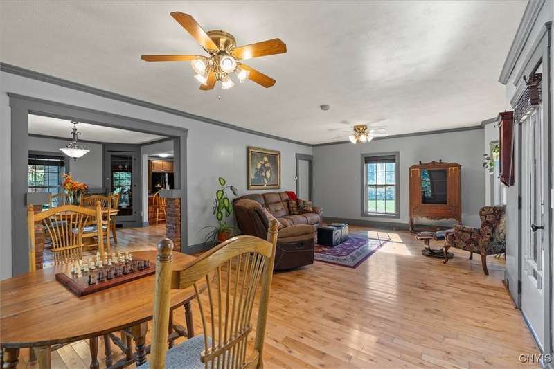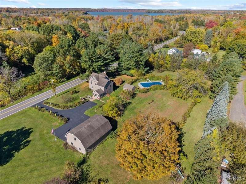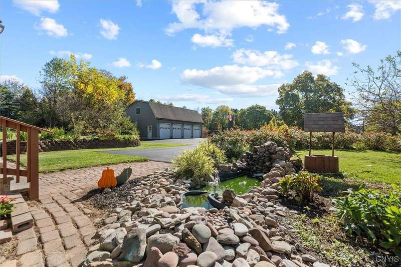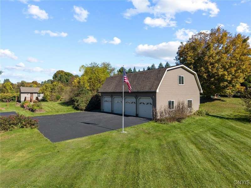 Welcome to 988 Co.Rt. 14. Easy living at it's best, so much to offer at this property.*Featuring 6 Bedrooms 4 Baths* Bright kitchen with Cherry cabinets, breakfast bar, jenn-air stove and birch hardwood flrs. Formal dining has brick half walls, hardwood floors, wood stove, and a built in corner hutch. Very spacious living room with many windows and plenty of space for versatile furniture arrangements. First floor bedroom has walk in jacuzzi tub. The entire third floor has been converted into a huge primary suite with full bath, skylights and loads of space. The remaining 4 bedrooms are located on the second floor where there is the bonus convenience of the laundry room, full bath with double sink as well as a common area. Other features of this home are ?an impressive side entry sunroom with many windows for natural sunlight, knotty pine walls and ceiling, and ceramic floor. Convenient on demand hot water, optional wood use in furnace, central air, and for perfect entertaining a (40x20) in-ground pool with diving board and slide. And wow?a pool house with shower, toilet, changing area. AND WAIT THERE'S MORE ..? a (48 x 30) 4 car garage with loft storage, power and water. Expansive blacktop driveway to house and garage with turn around area. All this situated on a meticulously manicured lot with perennials and a beautiful garden/pond/ fountain. Public water was just installed Oct 2025. Close proximity to schools and easy commute to Syracuse or Oswego. Enjoy the wide open 4.63 acre level yard to roam and make this your new home. HSA home warranty provided by seller, brochure at home.