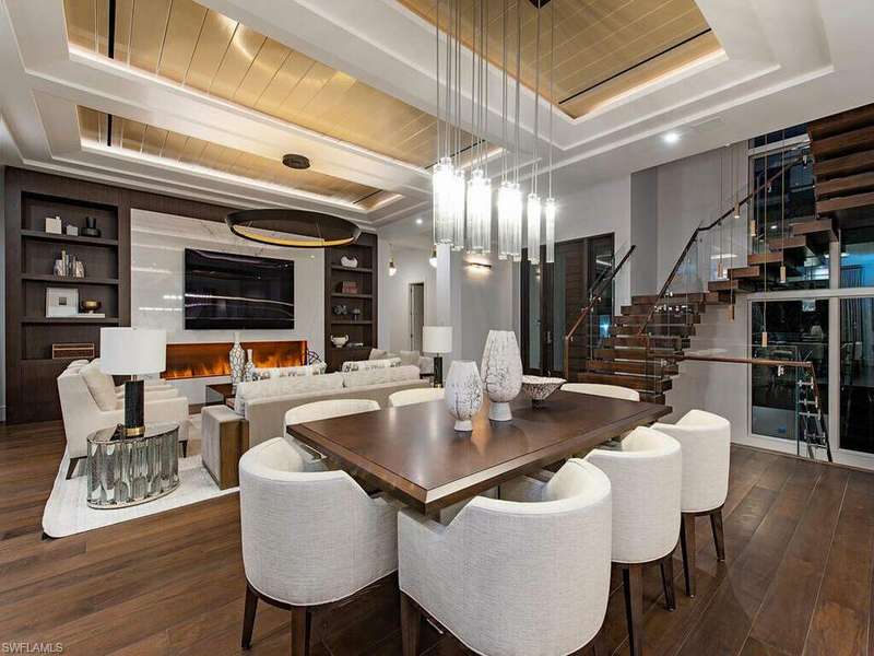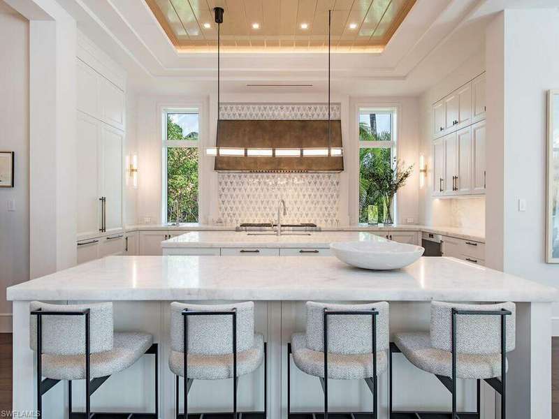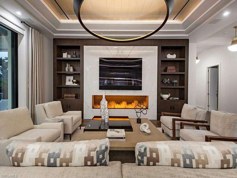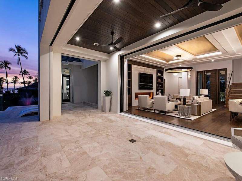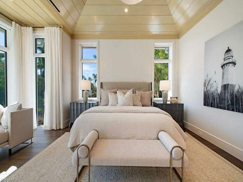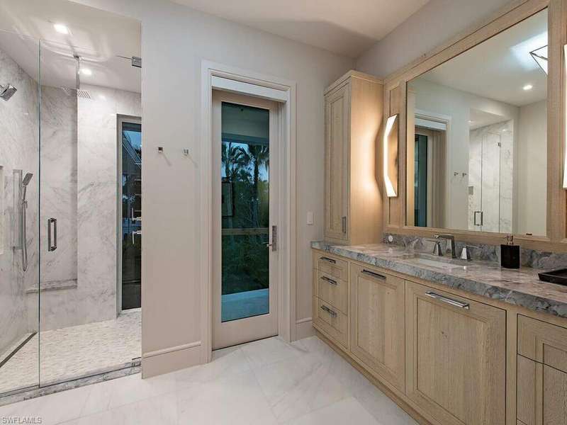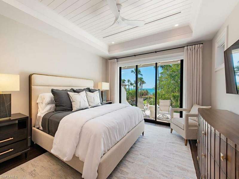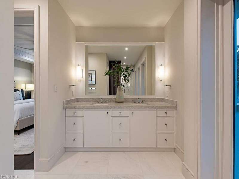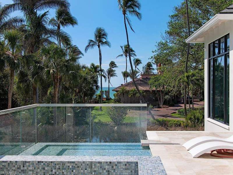 Located in a unique, gated beachfront enclave consisting of a mere nine homes, this newly completed residence penned by Stofft Cooney, built by Equinox Construction, and brought to life by Carrie Brigham Design, is striking and unmatched in the caliber of construction and finishes. A cantilevered walnut staircase flanked by glass balustrades offers intrigue to those who enter the great-room style floor plan hosting 5 bedrooms + club room, 7 full and 2 half bathrooms, a wine room coated in old world antique mirror Argenta tile, walnut flooring throughout, private elevator, and a rarely found 7-car garage. A luxurious kitchen hosts a marble mosaic backsplash, double islands, as well as top-tier appliances. While the grand master bedroom is located on the first floor, the second level features an additional master option with ensuite his and her bathrooms, as well as a VIP suite offering spectacular Gulf views. One can revel in the Gulf views from the sprawling outdoor environs located off of the main living level that provides covered/uncovered areas for relaxation, an infinity edge spa, sunshelf, fireplace, a state-of-the-art outdoor kitchen, and a zero-edge pool below.