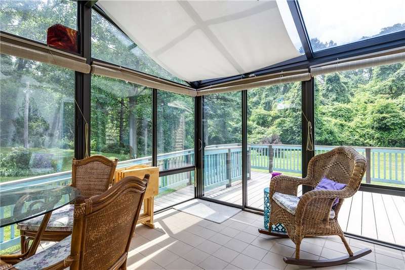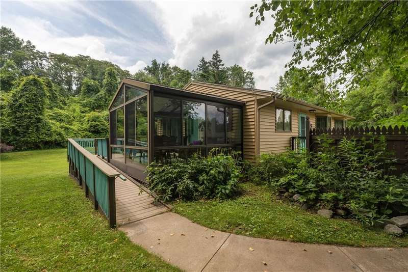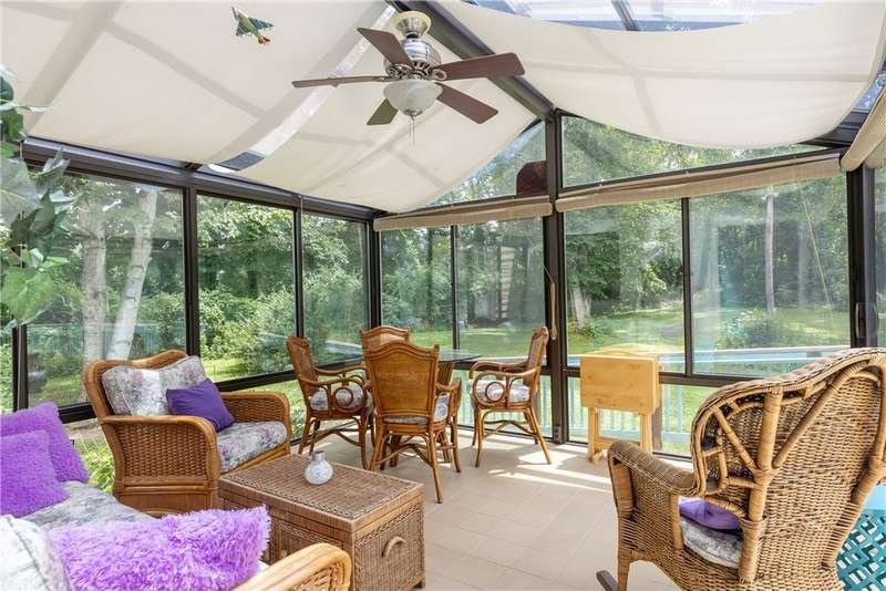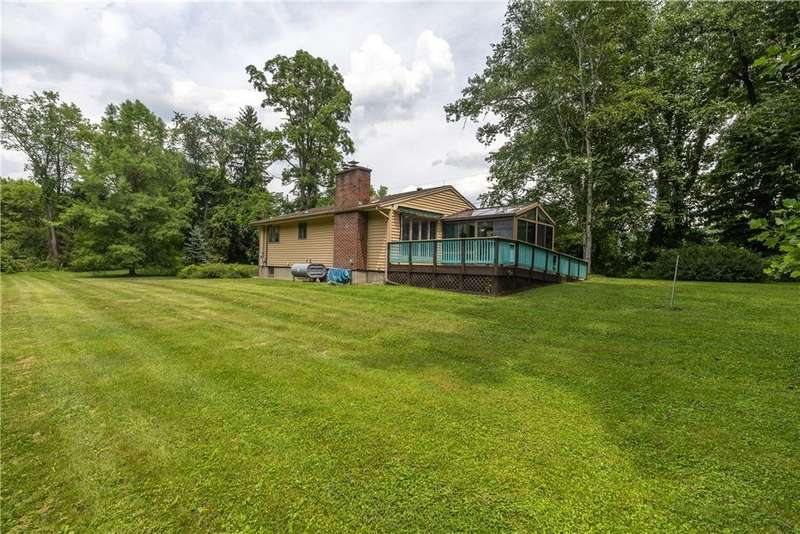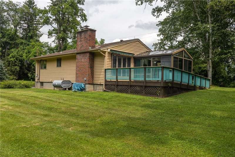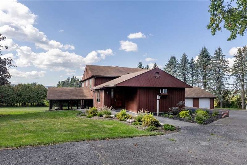 Nestled on just over 8 acres of picturesque land with lush, well-maintained gardens, this beautifully updated home offers a perfect blend of comfort, charm, and accessibility. The heart of the home features a brand-new kitchen with modern appliances, ideal for everyday living and entertaining. A newly added four-season sunroom, completed about 1.5 years ago, provides a bright, serene space to enjoy the outdoors year-round and includes handicap-accessible features for added convenience. The spacious living room is warm and inviting, centered around a classic wood-burning fireplace and built-in shelving. A formal dining room adds to the home's timeless appeal. The primary bedroom boasts a cedar-lined closet, offering both function and a touch of luxury. Handicap accessible garage with a chair lift to the upper level, ensuring ease of access throughout the home, with plenty of storage space and many possibilities. Located just 5 minutes from downtown Ithaca and close to shopping and amenities, this property offers peaceful country living with the convenience of city access.