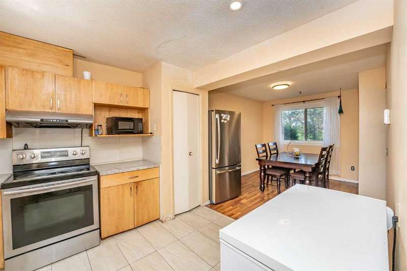 BIG SAVINGS - NO CONDO FEES!! Don’t miss this opportunity to own a well-kept, move-in ready home in a fantastic location close to all amenities. Offering over 1,400 sq.ft. of living space, this home features 3 spacious bedrooms on the main and upper levels, plus a 4th bedroom in the fully finished basement, along with 2 full bathrooms. The main floor boasts a bright, open living room and a functional kitchen with eating area—perfect for family meals or entertaining. Downstairs, the fully finished basement offers even more living space, including a recreation room, bedroom, kitchenette, second full bathroom, and laundry room with washer and dryer included—ideal for a teen suite, guest space, or extended family. Outside, enjoy the convenience of an oversized single garage and a location just steps from schools, parks, shopping, and public transit. Perfect for first-time buyers, investors, or a growing family, this home offers exceptional value—and best of all, no condo fees!