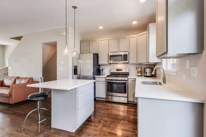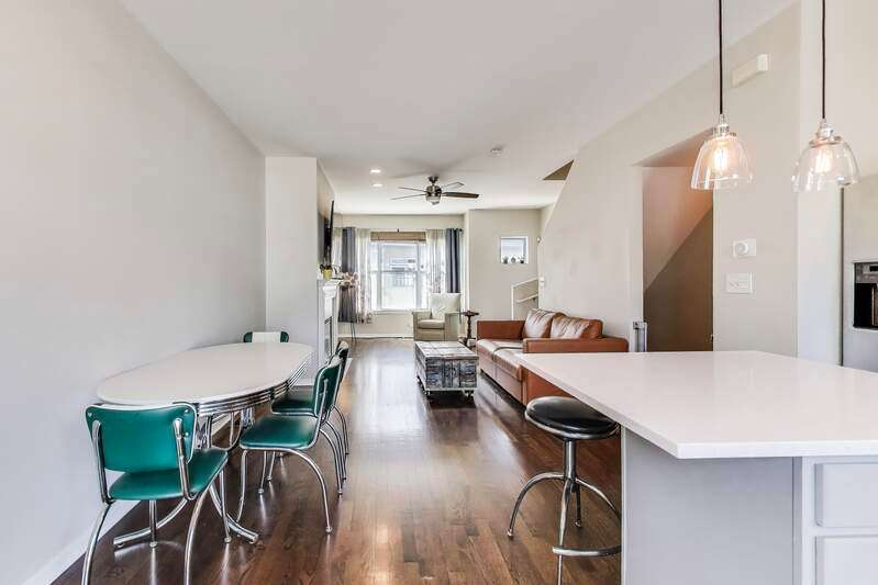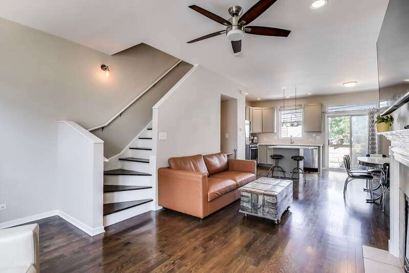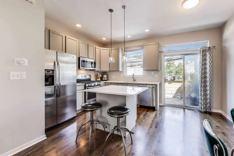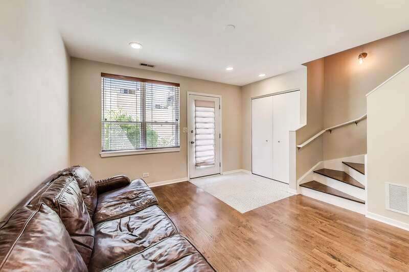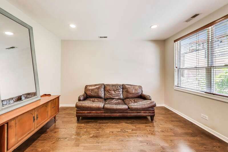 Avondale 2bed/2bath + Den, townhome, features 3-levels of living space, tall ceilings, great natural light, beautiful finishes and a 2-car attached garage. Unit D townhome location away from Belmont with entry via a peaceful courtyard. Main level features open kitchen / dining / living room layout. 42" oversized maples cabinets, quartz counters including an island for meal prep and entertaining, stainless steel appliances, hardwood flooring, gas fireplace. Kitchen opens to walkout patio for grilling and entertaining. 3rd level features 2-bedrooms and a full (recently remodeled) bath with a double vanity, soaking tub and marble tile floor. Bedrooms have wall to wall closets. Washer/dryer in 3rd level. Entry level is at grade. Full bath on main level and attached garage access. Den (or office/rec) room area on main level, coat and utility closet - can be walled off for 3rd bedroom. Townhome location five min walk to Belmont Blue Line and a short drive to I90/I94. Walk to restaurants and retail of both Avondale and Logan Square. Bus transportation on Belmont.