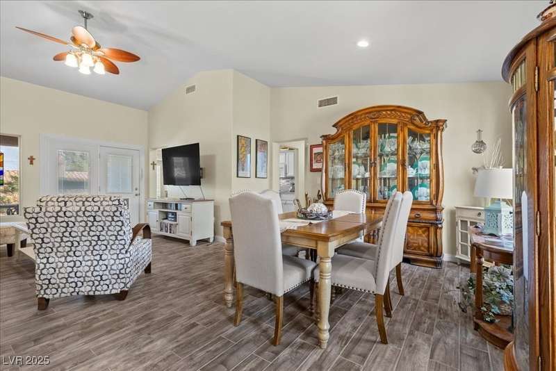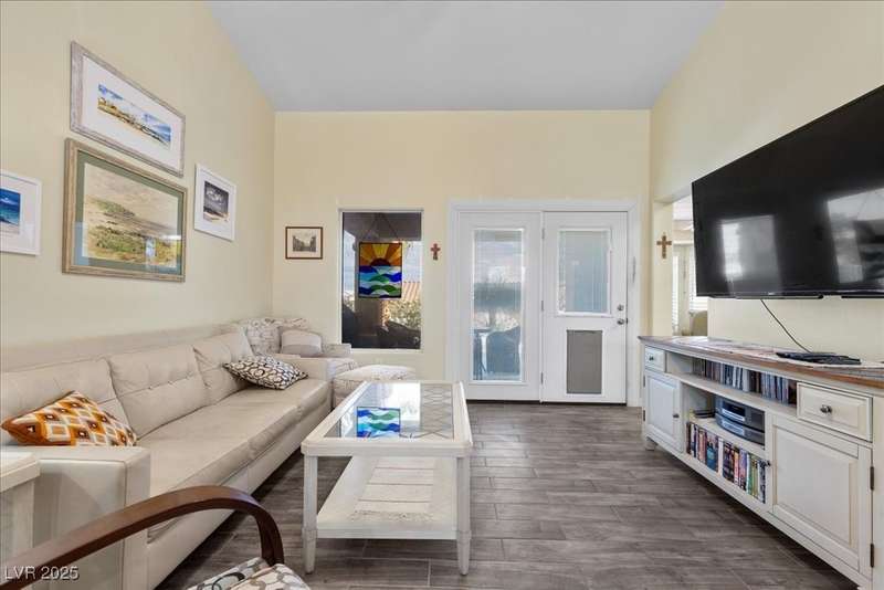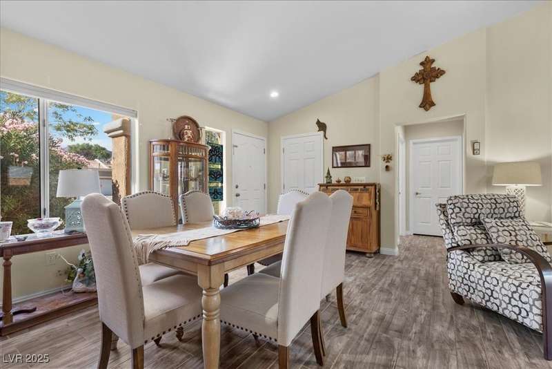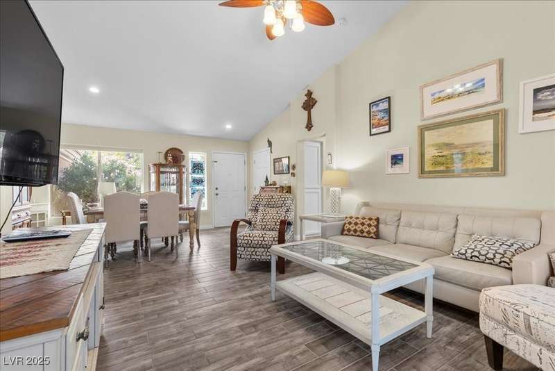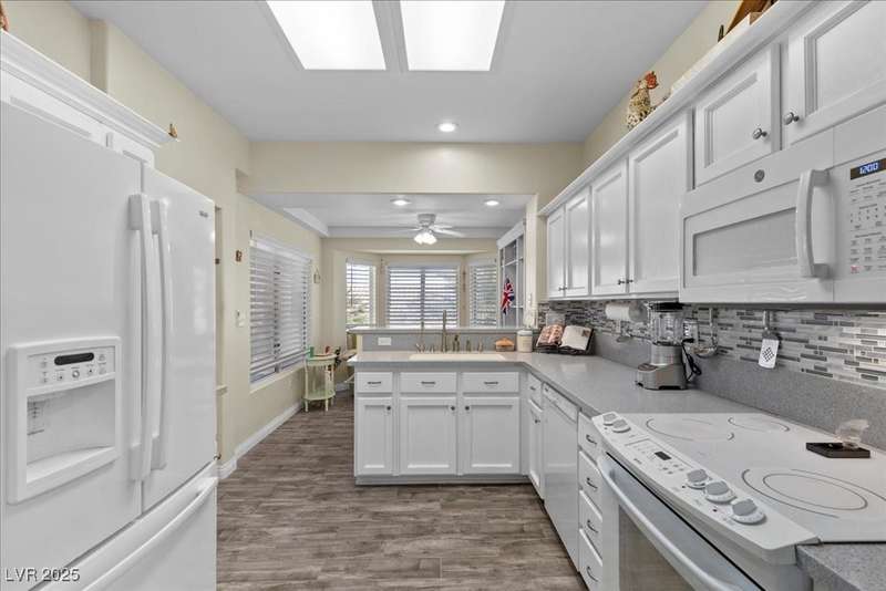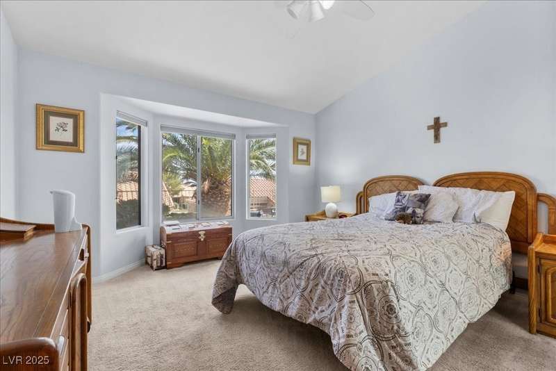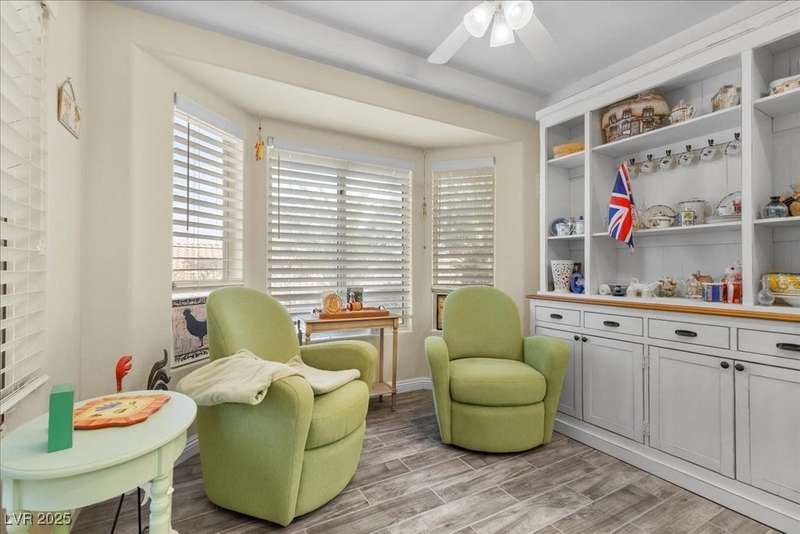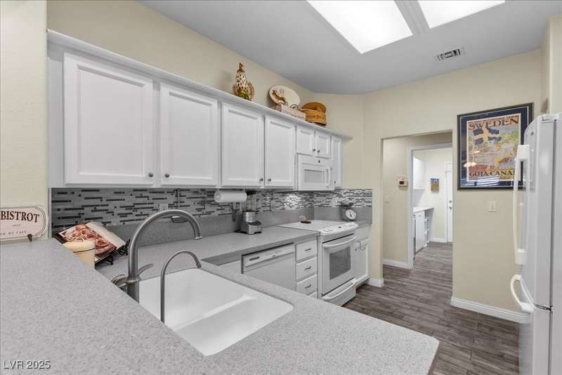 This beautifully maintained 2-bedroom, 2-bath home nestled in the heart of Sun City Summerlin, one of Las Vegas’ premier 55+ active adult communities. Open floor plan with upgraded tile flooring throughout, offering a seamless blend of comfort and elegance. The kitchen features ample cabinet space, a breakfast nook.The primary bedroom suite includes 2 closets walk-in closet and an en-suite bathroom with dual sinks and a walk-in shower, creating a private retreat. The guest bedroom is generously sized, ideal for visitors or a home office. A laundry room with extra storage adds functionality, while the attached two-car garage provides convenience and additional space. Outside, the covered patio and low-maintenance landscaping offer a peaceful setting to relax and enjoy the beautiful desert climate. As part of Sun City Summerlin, residents enjoy world-class amenities, including three championship golf courses and four clubhouses with state-of-the-art fitness center an dso much more.