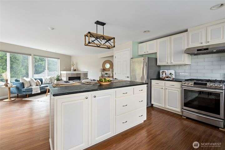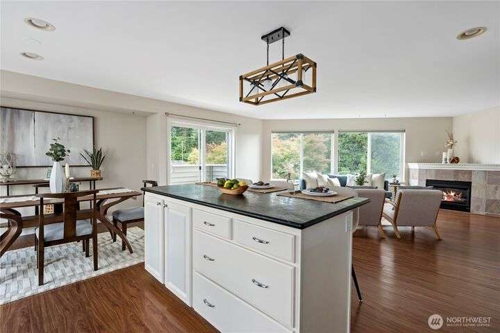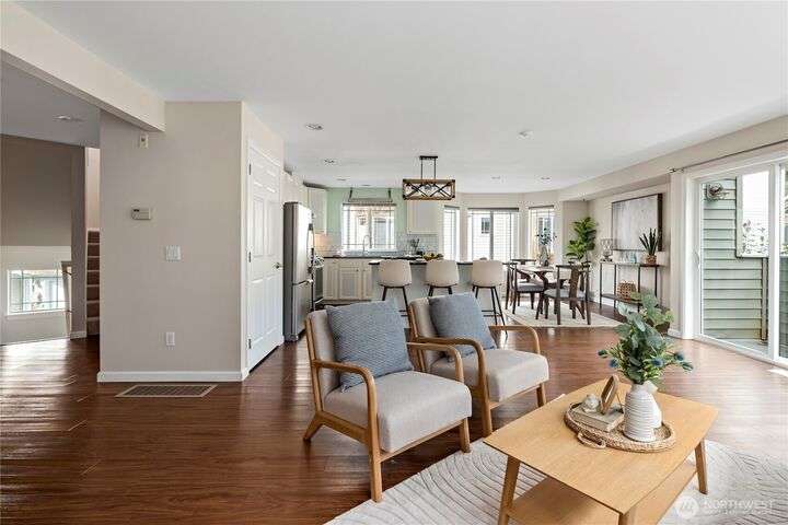 Stunning end-unit townhome in sought-after Lynnwood community, minutes from the Light Rail Station and Alderwood Mall. Near parks, schools, dining, and amenities, this lovely home offers both convenience and comfort. This 1700sf home features three bdrms—each with its own private bath—plus an additional powder room for guests. Thoughtfully designed, with upstairs laundry, two large bdrms on the third floor offering privacy away from the main living and dining areas, and a third bdrm on the first floor that’s perfect for guests or a quiet home office. The beautiful well-appointed kitchen includes a gas stove and soapstone countertops. The bright, open living area is ideal for entertaining. Pre-inspected and move-in ready. Come explore today!