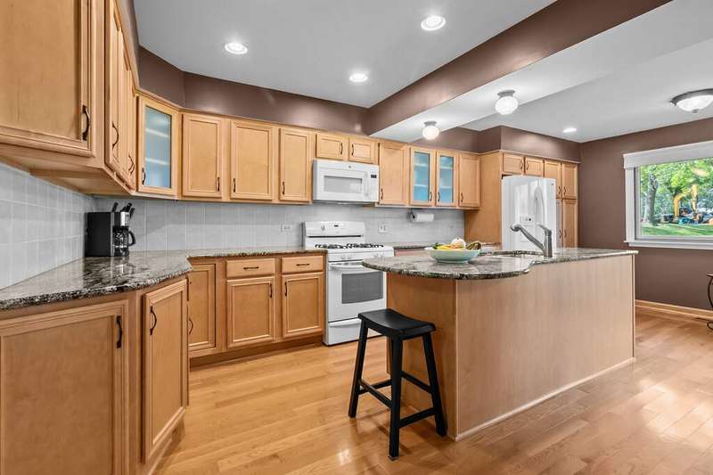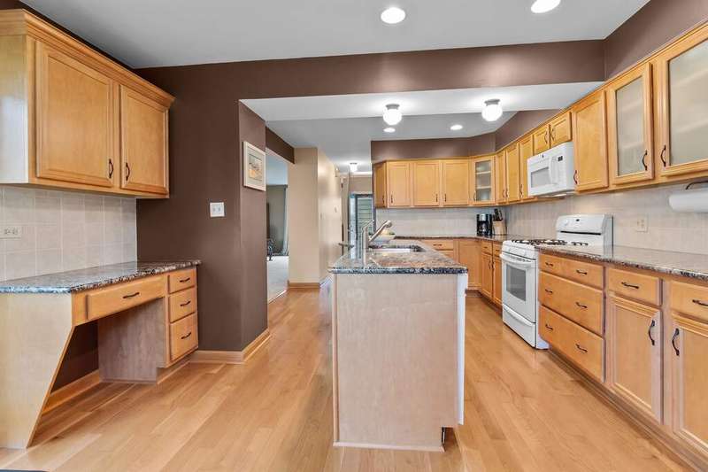 Meticulously maintained and move-in ready, this 3 bedroom, 2.5 bath condo in the desirable New Century Town Association is ready for its next owner. The bright living room flows into the dining area with access to the updated deck (2020), perfect for entertaining. The kitchen stands out with granite countertops, updated appliances, ample cabinet space, desk space, and hardwood flooring. Upstairs, you'll find three spacious bedrooms with floor to ceiling closets, two with hardwood floors, and both full bathrooms freshly painted in 2025. The primary suite includes its own private deck overlooking green space & ideal for enjoying your morning coffee. The fully finished basement provides flexible space for recreation, work, or additional living + utility room. Additional highlights include a 2-car garage, gutter guards, & low HOA dues. Conveniently located near top-rated schools, parks, and the library, with Vernon Hills High School, shopping, and dining just minutes away at Hawthorn Mall, Target, Walmart, Whole Foods, and more.