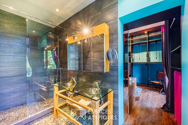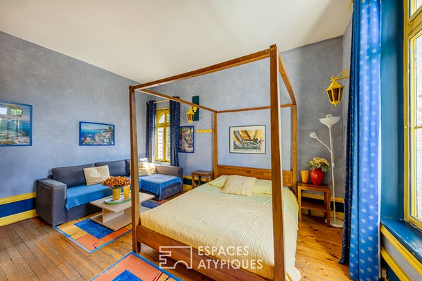 The other on the garden level offers 1 bedroom, a small lounge and its adjoining kitchenette, a bathroom. An additional 50 sqm offers a spacious garage and a laundry room. A shelter for several vehicles is also available. With its architectural character, its unique colors, its modular volumes and its 'sunny' garden, 'La Sucrerie' is much more than a mansion: it is a lively, evolving and inspiring property. Its timeless elegance combined with the luxury of a green setting, close to services and not far from major roads make it a unique place. A few refreshments to this place steeped in history will further enhance it.