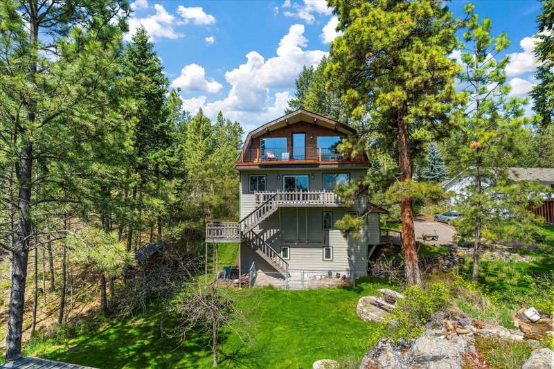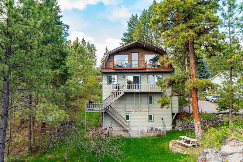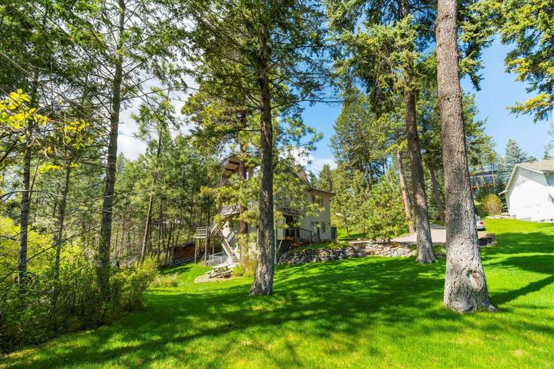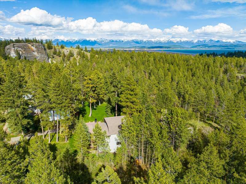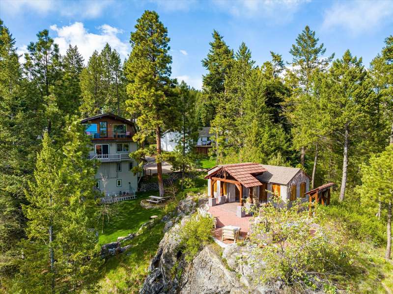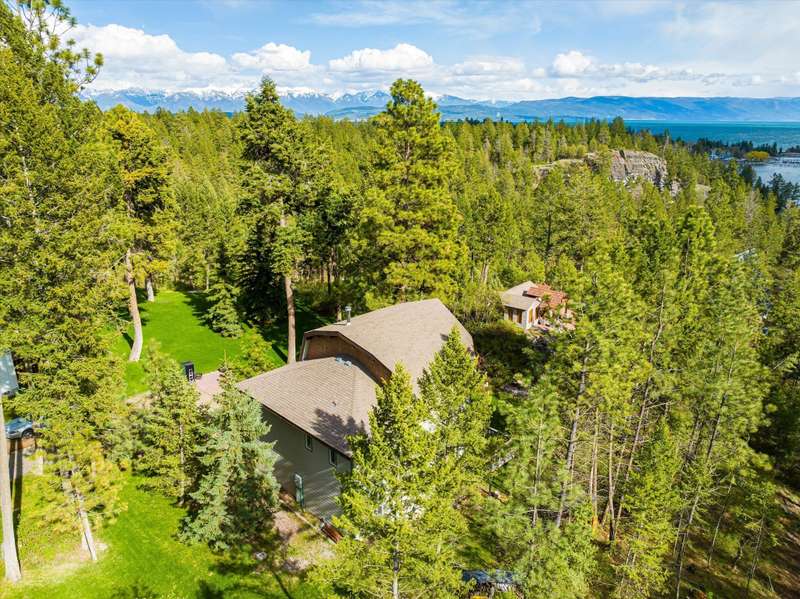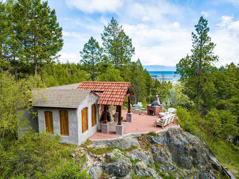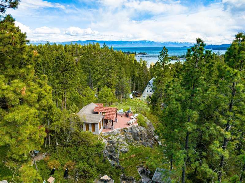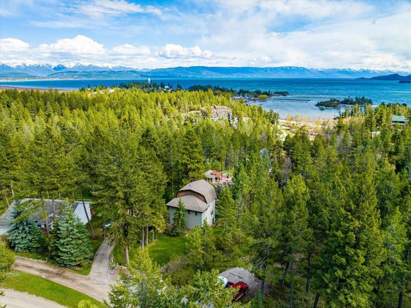 PRICE IMPROVEMENT! This remarkable property boasts stunning views of Flathead Lake and offers an extremely lush oversized landscaped yard where you will discover several tranquil garden nooks. Experience the enjoyment and ambiance of the enchanting Pizza Grotto placed up high on a rock plateau which features indoor-outdoor seating, & patio with multiple fireplaces, while admiring the gorgeous views of Somer's Bay. This property is a true gem! This large home offers separation of space. The bedrooms on the first story have an additional separate outside entrance. The second story features an natural light kitchen & dining area with wide open gorgeous views of the lake, a balcony, bedroom & 3/4 bath. Third floor is a large open great room with amazing views. This very desired location is in close proximity to Somer's Boat Launch,& beach.
