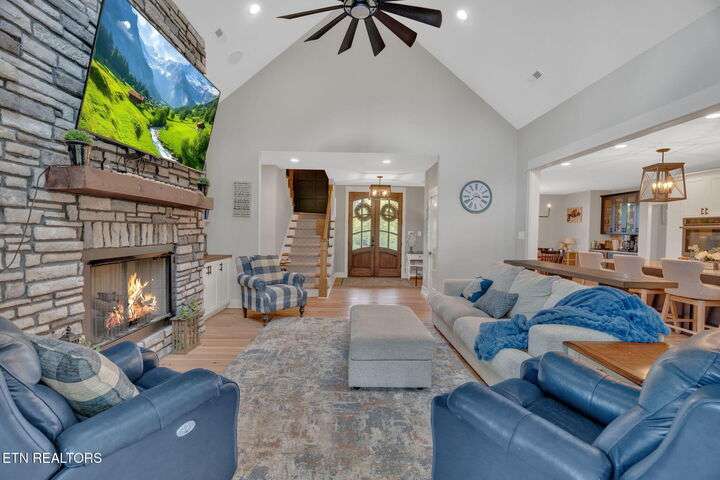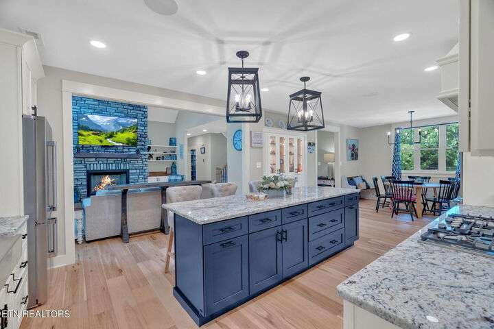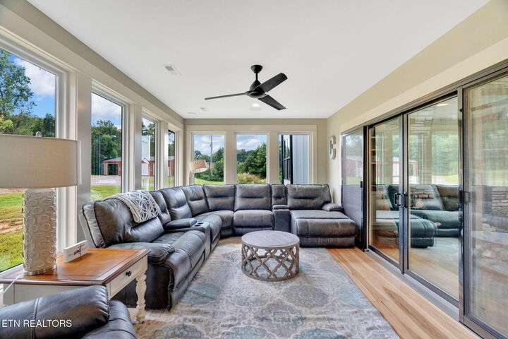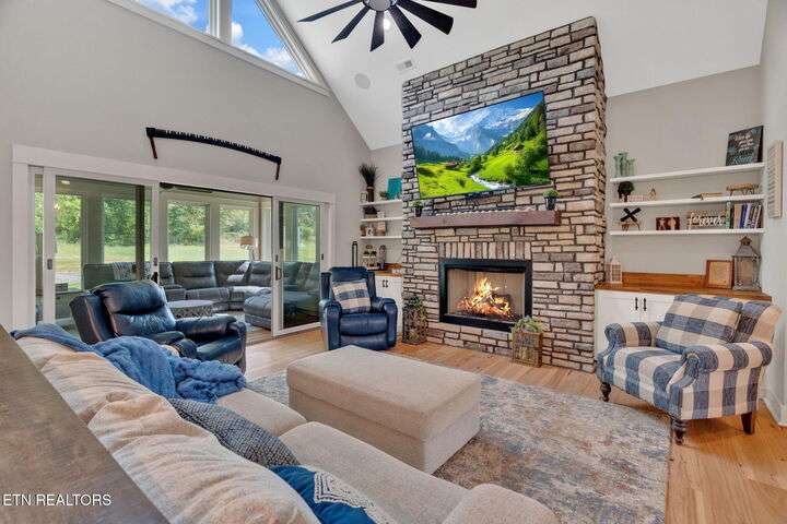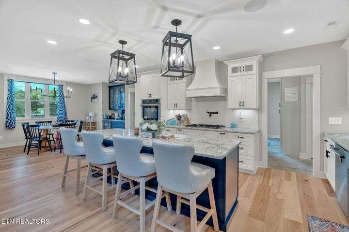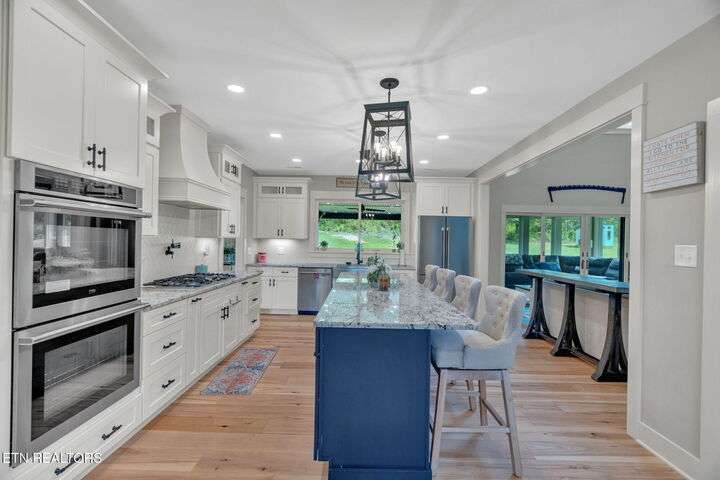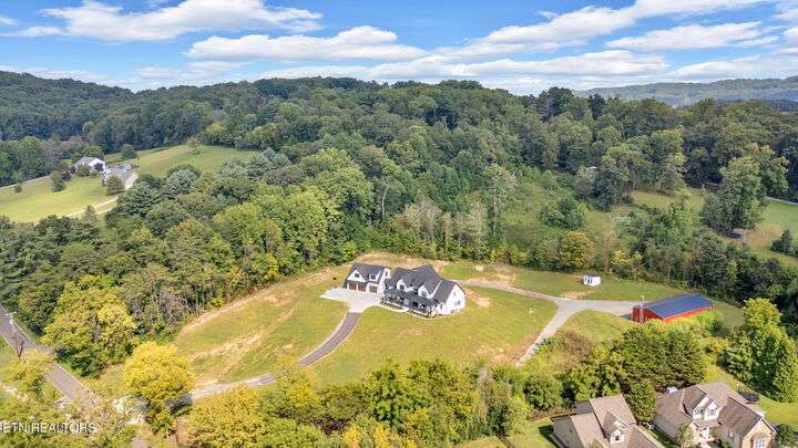 Beautiful Modern Farmhouse in the heart of Powell, but Unrestricted! Main home has 5 Bedrooms 4.5 Bathrooms w/ additional 1 BR/1Bth apartment over the huge 3-car garage. Two primary bedrooms on the main connected by a shared open floor plan with den and an enormous kitchen with granite island, stainless steel appliances, gas stove, 2 ovens, pot filler, breakfast area, custom built-ins and luxury features/unique upgrades including a whole home water filtration system, RED BARN with 3 bays and an RV hookup and separate power ready... Perfect for business, second home and more. Second master suite offers entire upstairs living quarters.. ideal for multi-generational families as well as the beautiful separate apartment above the 3 care garage! Gas fireplace, beautiful hardwoods accent walls, 2 grand stairwells, custom cabinetry throughout, lots of storage space and multigenerational multifunctional design. Potential to subdivide into 2 lots. This modern farmhouse is a dream - inviting you to retreat and relax without leaving home! Designed already with a pool in mind with sunroom heated/cooled off the covered porch with Exterior TV and surround sound - perfect for entertaining and hosting all your loved ones! This is more than a house—it's a lifestyle. A luxury retreat where you can grow, host, relax, and make memories for generations. Don't miss this rare opportunity to make this your dream home!