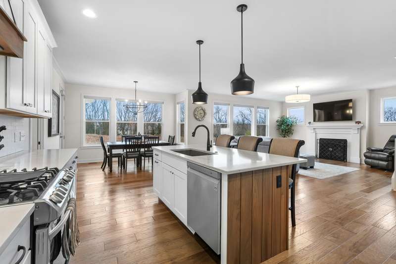 A fantastic alternative to building, this ''like new'' contemporary farm house has all of the bells and whistles, and is ready for it's new owner. Special features throughout this home include: awesome screened porch with access to the back patio and spacious level yard: an open and bright chefs kitchen with large island with snack bar, quality appliances and huge walk-in pantry: a multi-purpose upper level loft area: luxurious primary suite with soak tub and oversized walk-in closet: and a beautifully finished daylight basement with workout/game room, family room, bedroom and full bath. Conveniences include main floor laundry and Den, and formal and casual eating areas. Neighborhood offers a pickleball/basketball court, playground, cornhole and more. Outstanding location in Texas Twp.