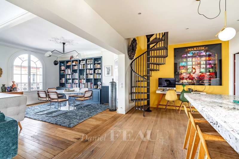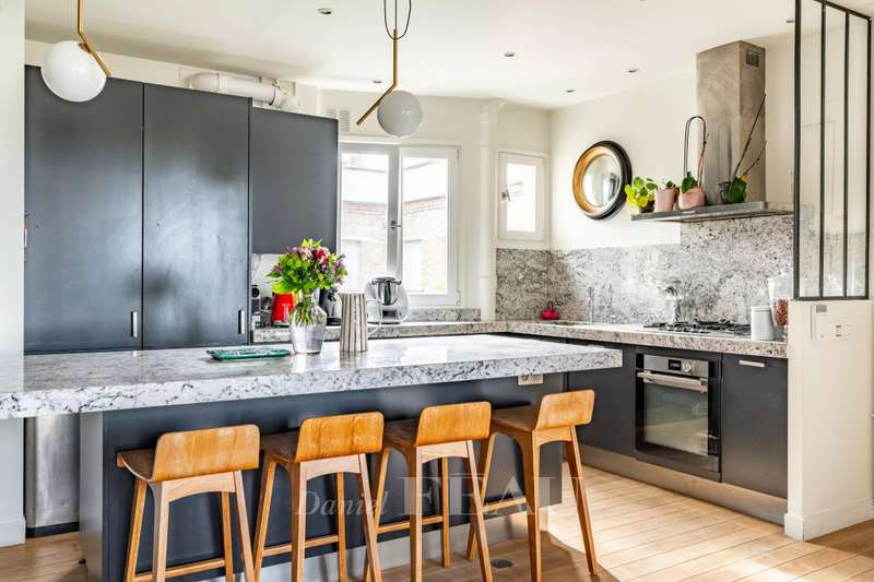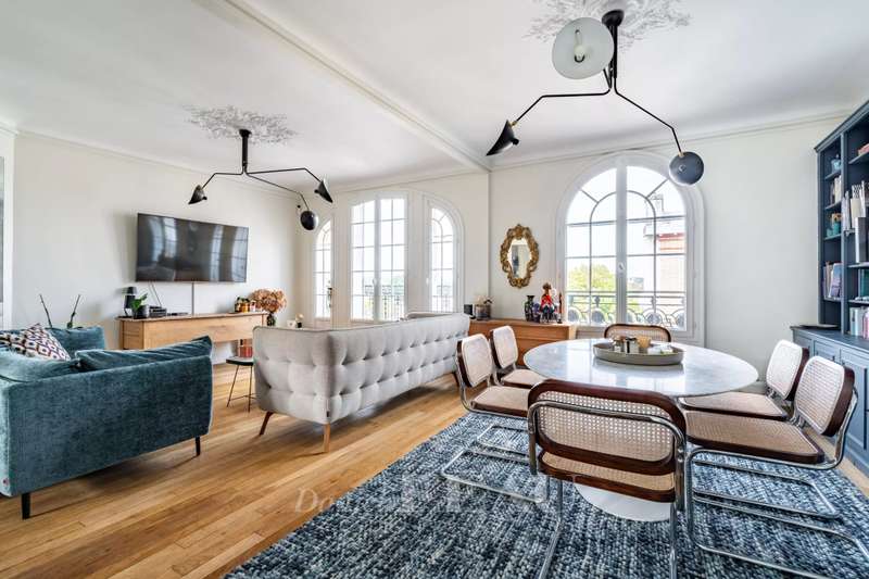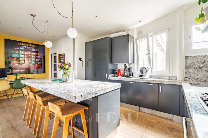 This superb duplex apartment on the 4th and top floor of a fine 1930s co-ownership located under 3 minutes from the station has been renovated throughout and is beautifully appointed. Benefiting from a little balcony, it offers 116 sqm of living space including a bright living/reception room featuring period parquet flooring and mouldings, an open-plan kitchen with a central island, a suite with a shower room, a bedroom with fitted cupboards, and a separate wc. Upstairs are two bedrooms, and a shower room with a wc. Cellar. No work is required, and the co-ownership is in excellent condition. In walking distance of the shops and schools.