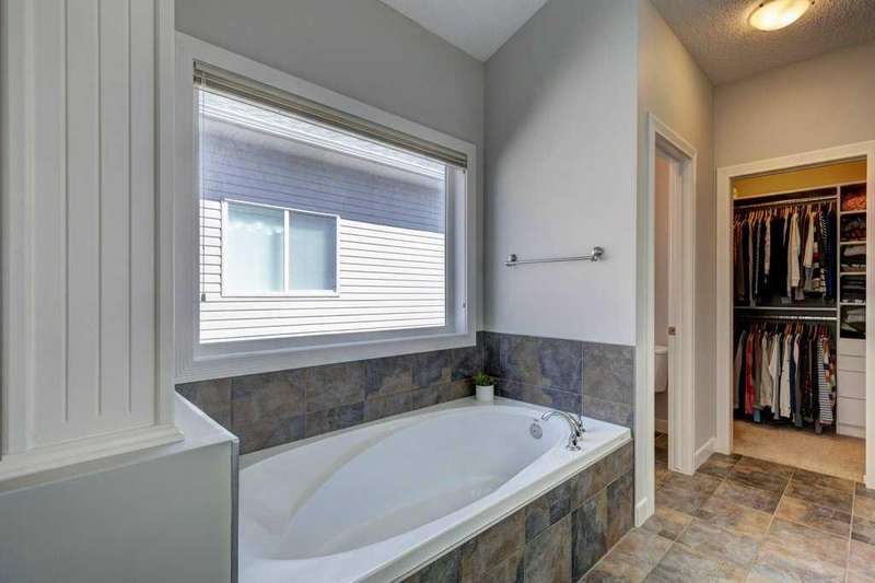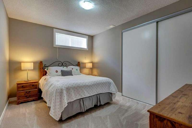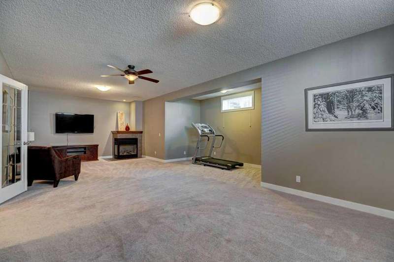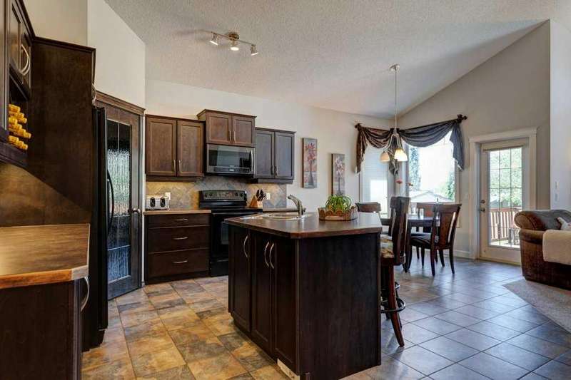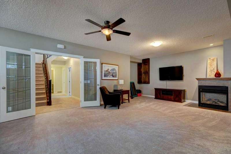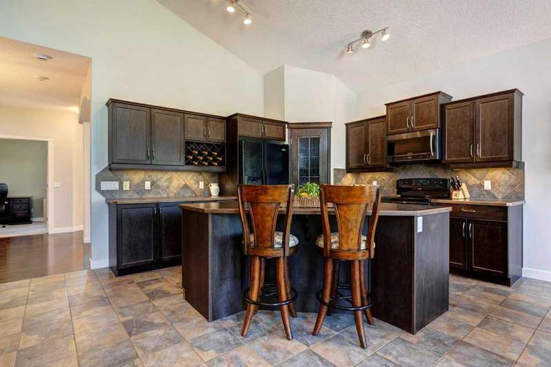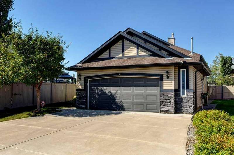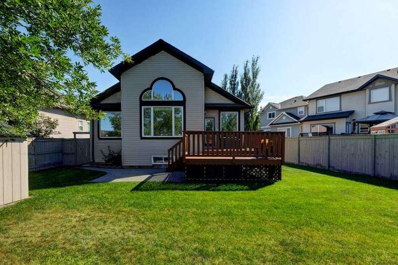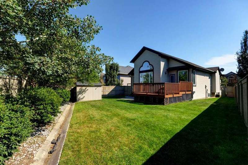 Rare opportunity in Cooper's Crossing! This beautifully maintained and fully developed bungalow offers over 3,000 sq ft of finished living space on a landscaped and fenced lot in one of Airdrie’s most sought-after communities. The open-concept main floor features vaulted ceilings, a spacious kitchen with dining area, pantry and island, formal dining area, cozy great room with gas fireplace, a huge primary bedroom with 5 pc ensuite complete with separate shower and soaker tub and walk-in closet. Also on the main floor are these key features - office, 2pc powder room, the convenience of main floor laundry and walkout access to the oversized deck (freshly painted)—perfect for entertaining! The fully finished basement adds two large bedrooms, a 4 pc bath with electric in floor heating and soaker tub, and a massive recreation room, ideal for movie nights or gatherings. Plenty of storage on the lower level. The oversized heated garage with hot/cold taps, an extra fridge/freezer and extended driveway provide ample parking and storage. Cooper’s Crossing is one of Airdrie’s most prestigious and award-winning communities, known for its beautifully landscaped streets, extensive pathway system, and family-friendly atmosphere. Residents enjoy close proximity to top-rated schools, parks, ponds, playgrounds, and convenient access to shopping, dining, and major commuter routes. This home shows 10/10—a rare bungalow in Cooper's Crossing that won't last long!