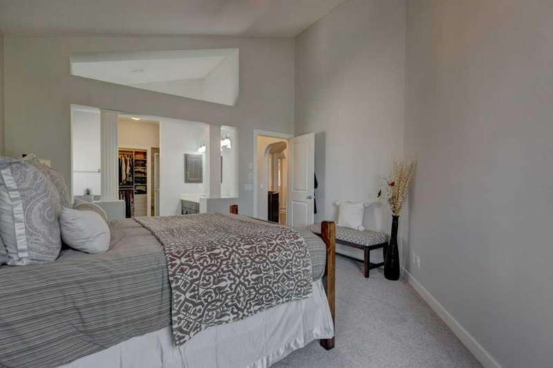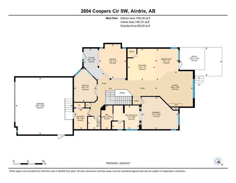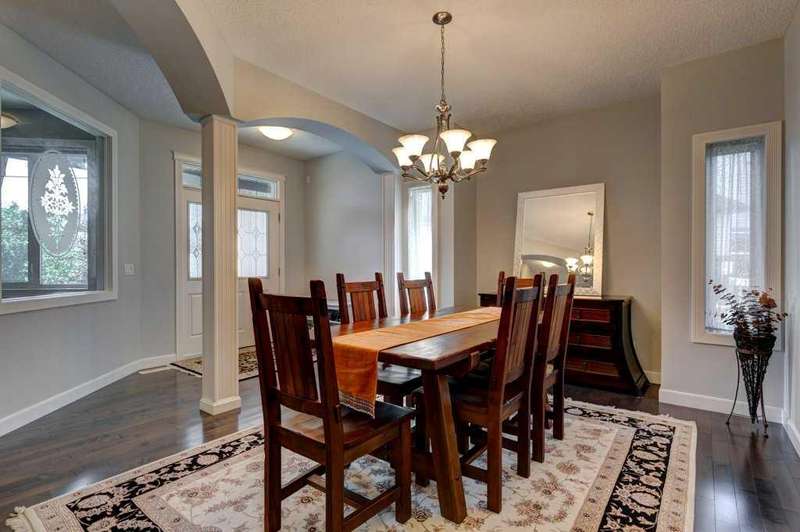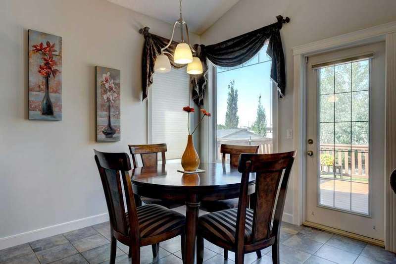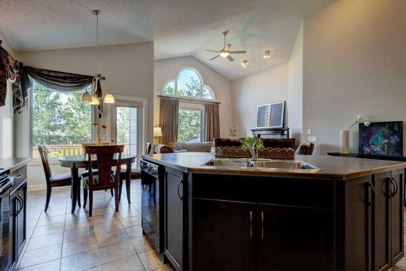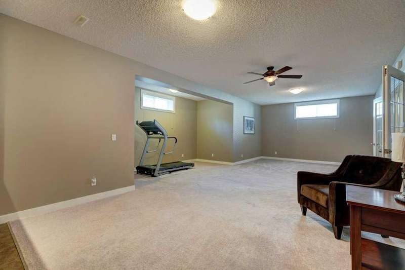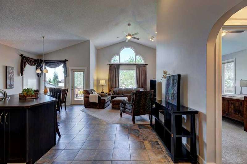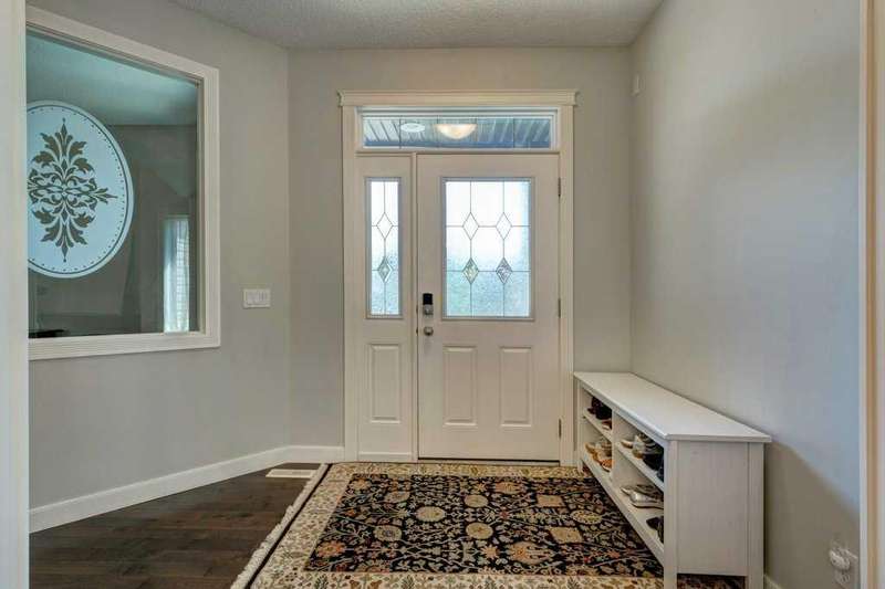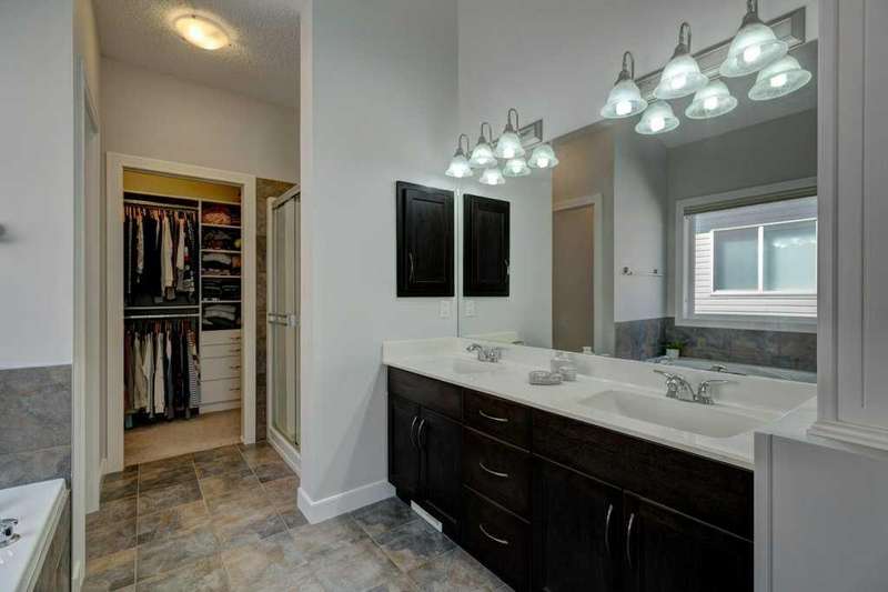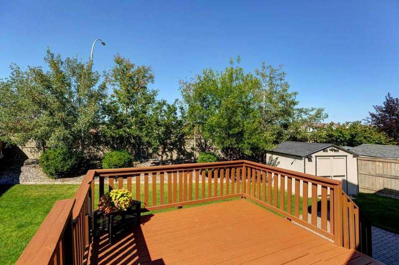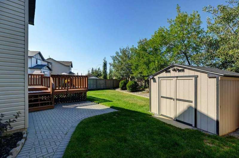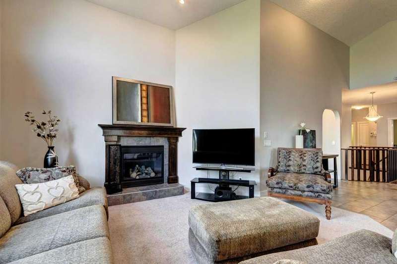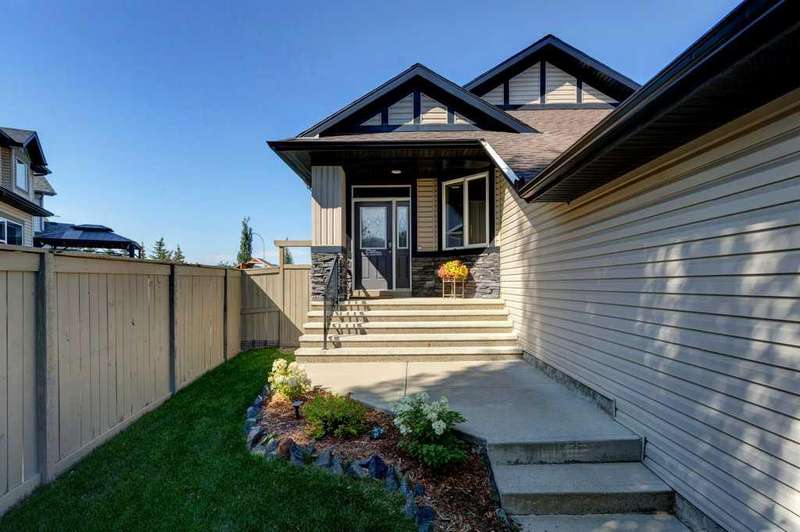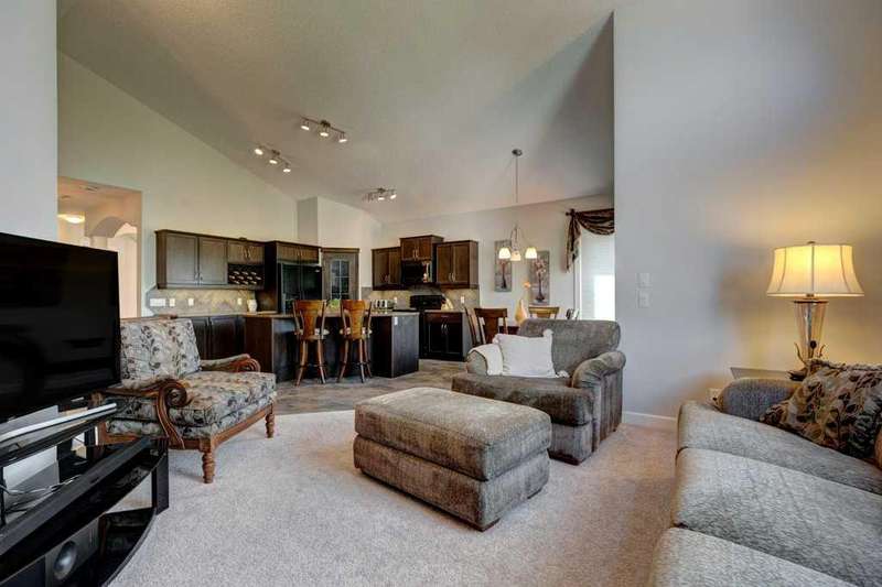 Rare opportunity in Cooper's Crossing! This beautifully maintained and fully developed bungalow offers over 3,000 sq ft of finished living space on a landscaped and fenced lot in one of Airdrie’s most sought-after communities. The open-concept main floor features vaulted ceilings, a spacious kitchen with dining area, pantry and island, formal dining area, cozy great room with gas fireplace, a huge primary bedroom with 5 pc ensuite complete with separate shower and soaker tub and walk-in closet. Also on the main floor are these key features - office, 2pc powder room, the convenience of main floor laundry and walkout access to the oversized deck (freshly painted)—perfect for entertaining! The fully finished basement adds two large bedrooms, a 4 pc bath with electric in floor heating and soaker tub, and a massive recreation room, ideal for movie nights or gatherings. Plenty of storage on the lower level. The oversized heated garage with hot/cold taps, an extra fridge/freezer and extended driveway provide ample parking and storage. Cooper’s Crossing is one of Airdrie’s most prestigious and award-winning communities, known for its beautifully landscaped streets, extensive pathway system, and family-friendly atmosphere. Residents enjoy close proximity to top-rated schools, parks, ponds, playgrounds, and convenient access to shopping, dining, and major commuter routes. This home shows 10/10—a rare bungalow in Cooper's Crossing that won't last long!