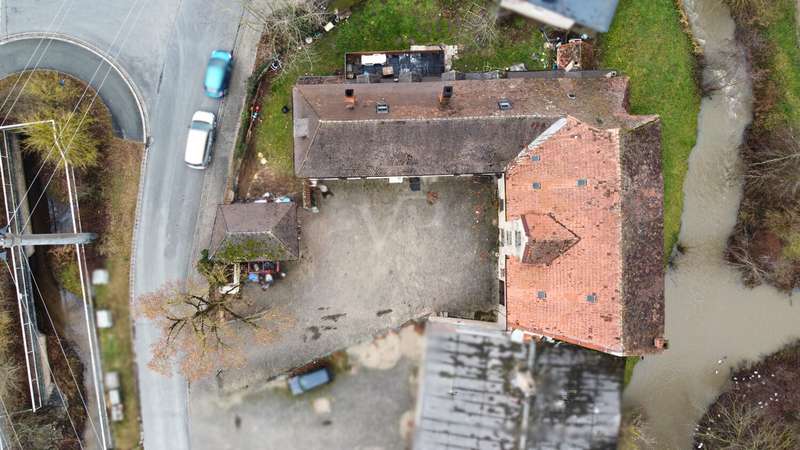This charming country house dating back to 1817 is harmoniously connected to a historic mill. The property extends over a generous plot of approx. 1,000 m² and offers plenty of space on a living area of approx. 230 m². The mill, which still has its original grinding mechanism, lends the property a special character and can be used in a variety of ways for individual projects. With direct access to the River Aisch, you can enjoy water and tranquillity. This property is particularly suitable for craftsmen and lovers of historic buildings. The age-appropriate condition of the building preserves its original charm and historic substance, allowing you to realize your personal ideas and visions. The property has its own small sewage treatment plant and wood-burning stoves on each floor, which create a cozy atmosphere. Sufficient parking spaces are available. The spacious interiors offer room for retreat and creativity, while the outdoor area provides space for garden projects or communal activities. The top floor is ideal for conversion and offers plenty of space for creative ideas. The beautiful old beams give the space character and can be perfectly showcased with modern building materials. Here you have the opportunity to create a unique ambience that combines the historic charm of the house with contemporary living comfort. The diverse design options allow you to create a retreat, a study or a cozy reading corner. Let your imagination run wild and use the space to fulfill your personal wishes. The top floor will become the highlight of your property. Use the enormous potential of your historic property and design it according to your ideas. Here you can realize your ideas and experience the combination of history and modern lifestyle in a unique ambience. The building is listed and recognized as an architectural monument, which means it enjoys special protection and is of valuable historical significance. It is in the public interest to preserve this property as it not only preserves cultural heritage, but can also potentially receive funding and grants for restoration or conversion. This makes the building even more interesting for investors or project developers, who can benefit from financial incentives to preserve the historic substance while enabling sustainable use. Anyone looking for a special place with character and history will be delighted by this country house. Another advantage is the immediate proximity to the town, which can be reached on foot. You live centrally yet quietly, everything is within easy reach. This location is ideal for families, but also for tradespeople who appreciate the unique local connections and easy accessibility. The combination of rural charm and urban infrastructure makes it possible to enjoy the advantages of both worlds. Schools, shopping facilities and leisure activities are in the immediate vicinity. Whether for a relaxed family life or as a location for your business - this property offers the perfect basis for making your dreams come true. Be inspired by the harmonious atmosphere and the wide range of possibilities. Conclusion: For handy families who want to live centrally yet quietly and need plenty of space, this work of the century is just the thing. It also offers an ideal environment for enthusiasts with a love of detail who want to create their life's work here and give free rein to their creativity. Take advantage of the many possibilities offered by this historic property to realize your personal dreams and create a unique home. An energy certificate is not required due to the applicable regulations, § 16 (5) EnEV.