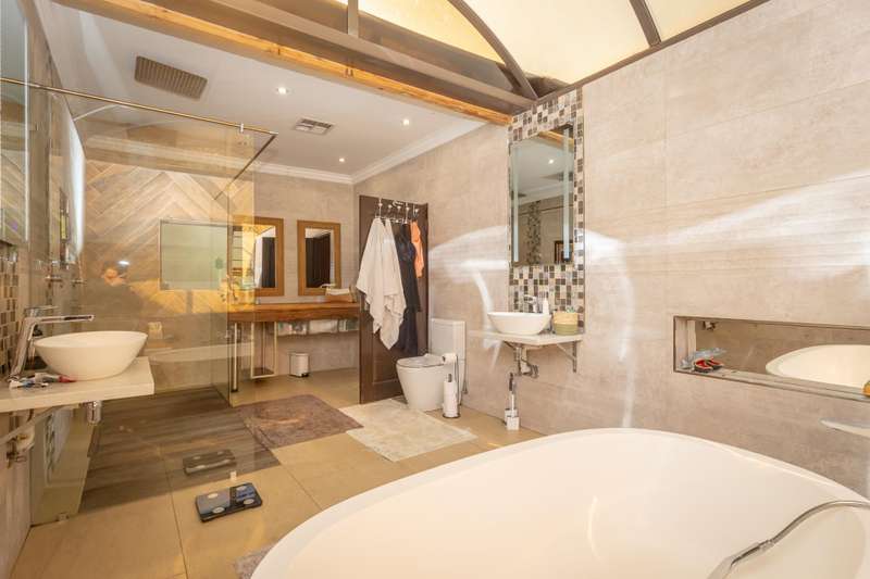Exceptional Damfront Residence in Buffelspoort Eco Park ?Çö A Rare Retreat in a Protected Biosphere Tucked away in a quiet cul-de-sac and perfectly positioned along a lush greenbelt, this immaculate home offers breathtaking, full-facing views of Buffelspoort Dam, surrounded by the unspoiled beauty of the Buffelspoort Valley ?Çö a registered Biosphere Conservation Area. Here, nature and architecture exist in perfect harmony, offering a lifestyle of tranquillity, privacy, and sophistication. This is more than a home ?Çö it?ÇÖs an invitation to live meaningfully in one of South Africa?ÇÖs most serene ecological havens. ??? Property Highlights: ?Çó Spectacular rooftop sundowner patio with panoramic dam and mountain views ?Çó Double outdoor shower facing the water ?Çö the pinnacle of al fresco luxury ?Çó Central air-conditioning system throughout the home ?Çó Built-in pizza oven & braai ?Çö entertainer?ÇÖs dream ?Çó Inviting indoor fireplace ?Çö perfect for cosy winter evenings ?Çó Private cinema room for an immersive entertainment experience The luxurious main suite is bathed in natural light through a feature skylight, with an oversized freestanding bath creating a serene, spa-like escape. ??? Garaging & Additional Features: ?Çó Double garage with direct home access ?Çó Extra-height double carport, ideal for a sea boat or caravan, complete with custom storage shelving ?Çó Domestic quarters with separate entrance ??? Eco Estate Lifestyle: Living in Buffelspoort Eco Park means embracing a lifestyle that celebrates conservation, community, and well-being: ?Çó Located within a biosphere reserve, the estate is a protected ecological zone ?Çó Free-roaming wildlife throughout the estate including Nyala, Red Lechwe, Blesbok, Impala, Springbok, and Steenbok ?Çó Extensive greenbelt areas encourage biodiversity and birdlife ?Çó Paved and illuminated walking trails meander throughout the estate, allowing for safe, scenic strolls or sunset jogs ??? This residence is a rare offering ?Çö where refined living meets ecological consciousness, and every view is a reminder of the raw, untouched beauty of the Buffelspoort Valley. If you?ÇÖve been searching for a home that soothes the soul, inspires the senses, and offers long-term lifestyle value ?Çö you?ÇÖve just found it.