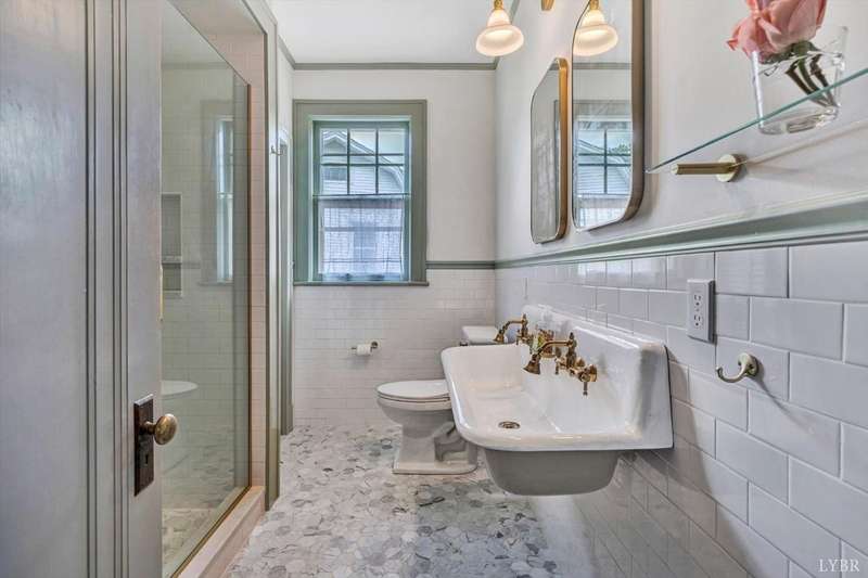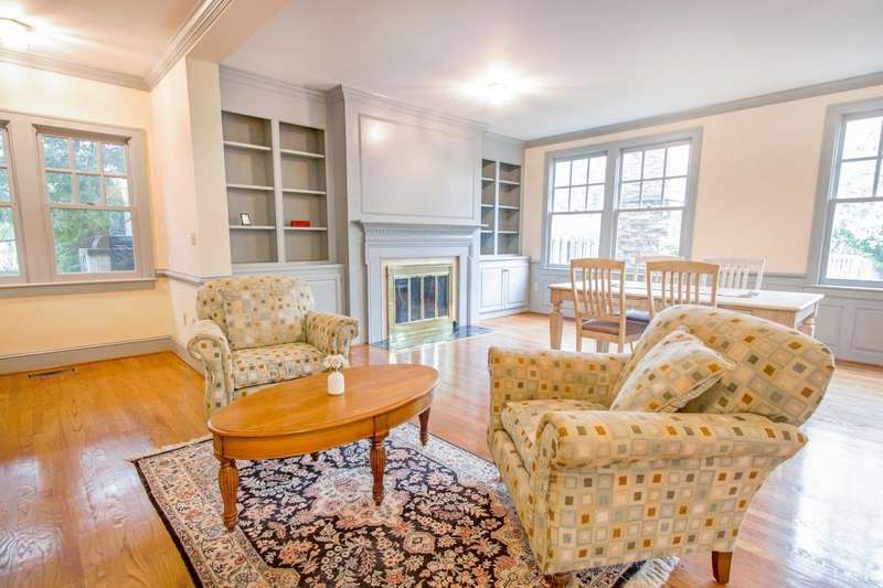 This classic brick beauty in Bedford is boasting many recent improvements: totally renovated kitchen with quartz countertops, backsplash & waterfall finish, and new appliances. Refinished heart pine flooring & new hardwood flooring in spacious primary bedroom, luxurious renovated primary bath w/marble tile & walk in shower, newly painted bedrooms, dining room & third floor, new carpet in basement & third level, two new heat pumps, waterproofing in basement, newly renovated second floor bath complete w/ marble tile & walk in shower & numerous other improvements. This home is perfect for a growing family w/ 5 bedrooms, 3 full & 3 half baths. The 2 story addition offers huge family room w/ fireplace, huge primary bedroom w/ fireplace, 3rd floor complete w/ 5th bedroom & 3rd full bath as well as another game/den. There are 4 fireplaces which contribute to the charm and character. The back patio has large stone fireplace excellent for outdoor entertaining. Fenced in Backyard.
