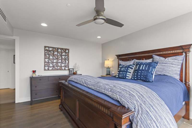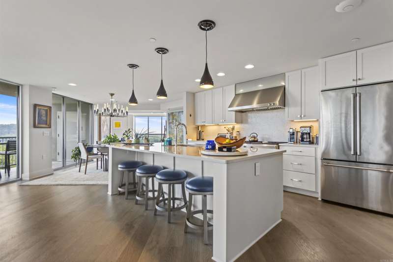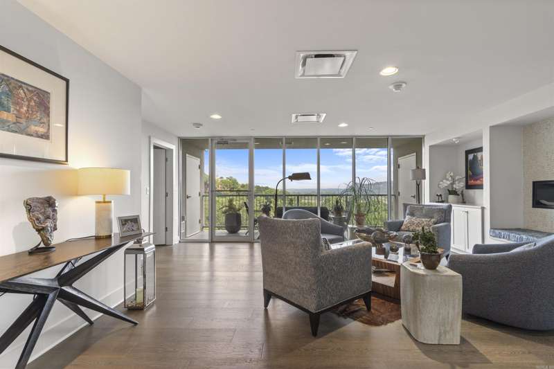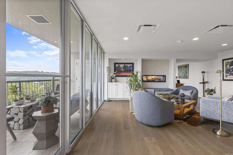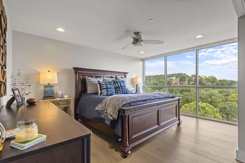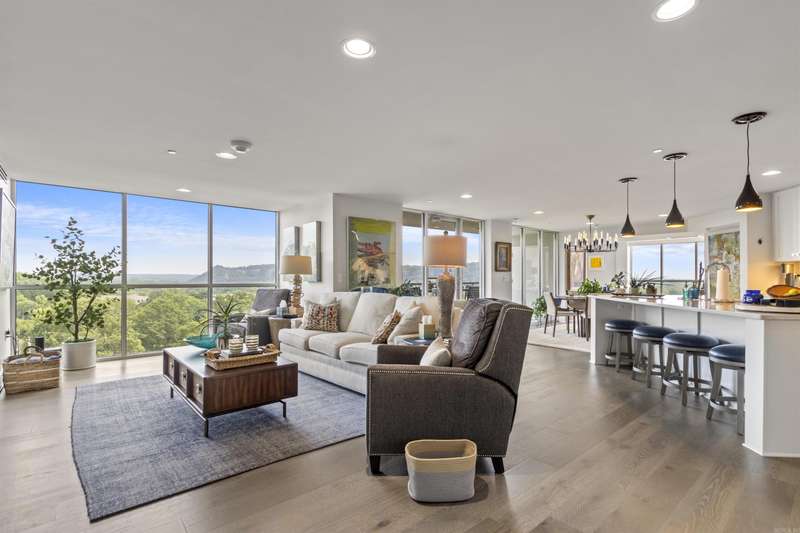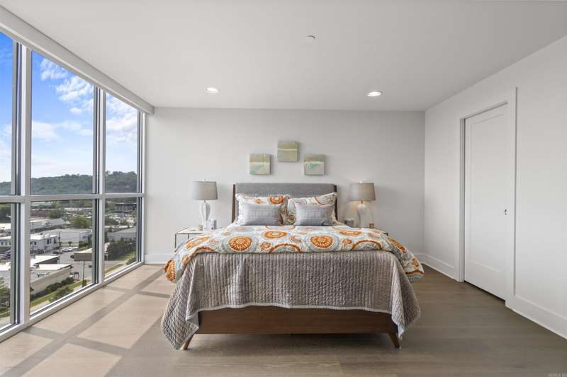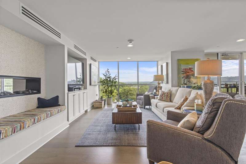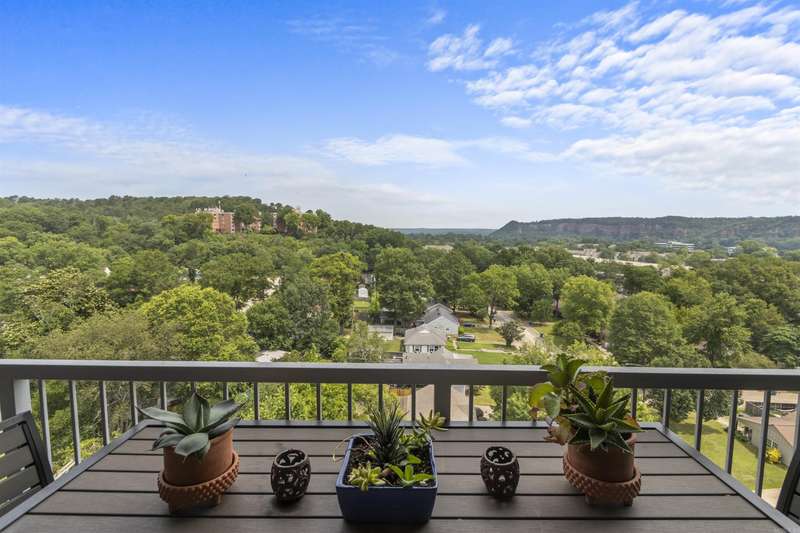 This exquisite condo with designer finishes has absolutely gorgeous views. Being on the tenth floor it has both scenic bluff views and downtown with river views. Two bedrooms and two and a half baths. Floor to ceiling windows, two balconies, double-sided gas fireplace, and plenty of storage throughout! Quartz countertops in the open kitchen with GE Cafe appliances including refrigerator and 48" gas stove, ice maker, butler's pantry, large walk-in pantry and laundry room. Perfect opportunity for anyone wanting a spot in this great condominium building! This is the updated two-bedroom Monte Carlo floor plan.