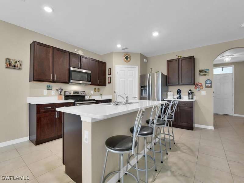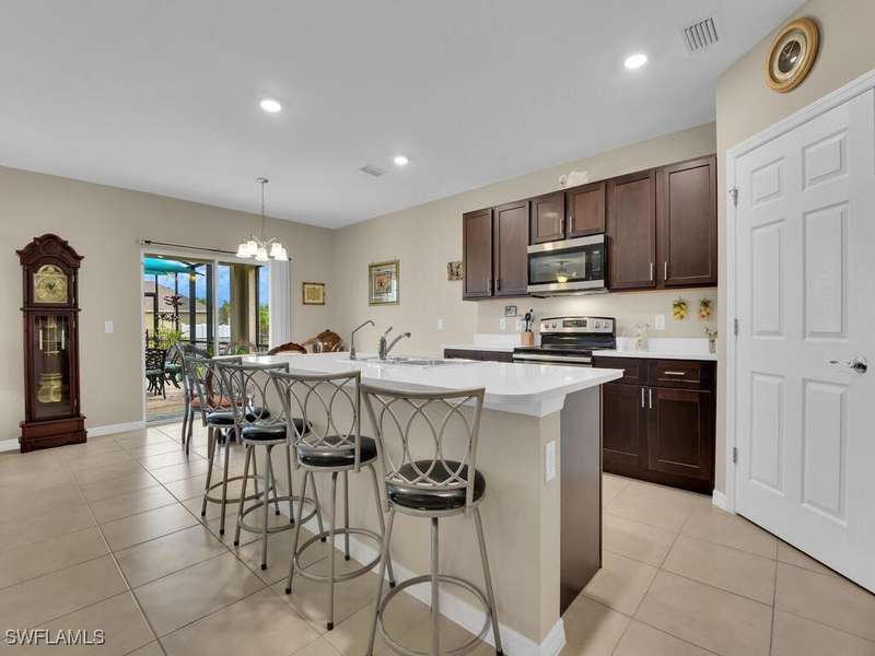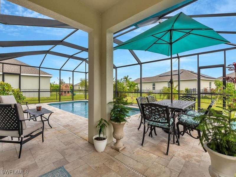 New Roof on the way! New Improved Price. Sellers are offering $5000 towards closing costs or to help buy down the buyer's interest rate. Immaculate 5 bedrooms plus a den and 3 full baths home in the highly sought after Villages of Entrada. Built in 2020, with a large pool and a huge fenced yard with plenty of room for the kids or fur babies to play. Enjoy your morning coffee or just watching life go by on your enclosed front porch. Once you enter this lovely home, the den/office is to your right with sliding barn doors that allow it to be closed off if you want quiet or 6th bedroom! As you enter the open kitchen you'll notice the walk-in pantry, stainless steel appliances, custom cabinets and quartz countertops. This home includes many upgrades. The spacious family/living room is just off the kitchen and a separate dining area overlooks the lanai. The lanai has lots of room for dining and entertaining. The large heated pool adds to the year-round enjoyment this house offers. With 4 bedrooms and a loft upstairs there is room for everyone. The master bedroom and bath are separated from the the other bedrooms by the loft/family room for added privacy. The community amenities include a clubhouse, community pool, tennis/pickleball courts, fitness center and much more. Make your appointment today to see this fabulous house.