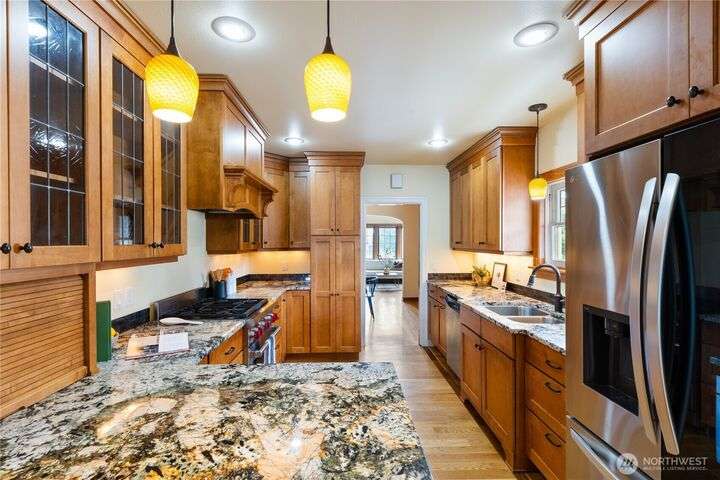 Tudor style home located in Old Town Anacortes. Built in 1932, this beautiful home is in the perfect neighborhood. You will love this house and location. Short stroll to shopping, restaurants, Causland Park or to the Guemes Channel to enjoy the beach or just watch the ships go by. Home offers a new addition of a library & Primary suite & huge walk-in closet, jaw dropping bathroom, soaking tub, walk-in shower & quality finishes. Kitchen has new granite, cabinets and hardwood floors. Upstairs boasts spacious room for a crafts room or playroom with lots of natural light plus full bath & 2 bedrooms.Top-Down bottom up shades. Basement is a dream with lots of space for storage or extra rooms. Newer single car detached garage off alley.
