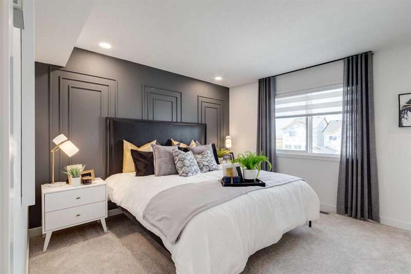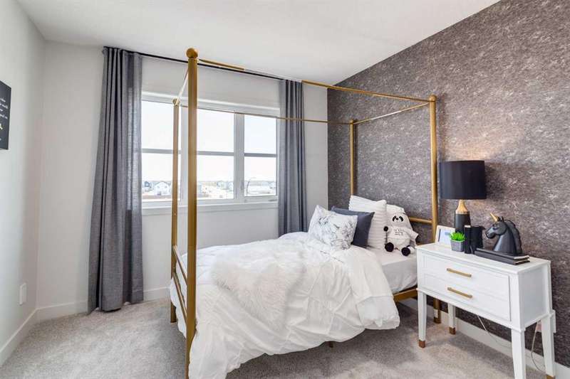 THIS HOME SPENT ITS FIRST YEARS IN THE SPOTLIGHT AS A HOMES BY AVI SHOWHOME. NOW IT’S READY TO TRADE DISPLAY LIFE FOR REAL LIFE WITH ITS FIRST OWNER. The living room itself rises TWO STOREYS HIGH, anchored by a bold painted feature wall with an ELECTRIC FIREPLACE and clean mantle ledge. Windows stack one above another, pulling daylight into every corner. GLASS RAILING from the bonus room above keeps the sightlines open, so even upstairs you feel part of the action. In the kitchen, the details go beyond builder-basic: QUARTZ COUNTERS, a Silgranit undermount sink, GAS RANGE under a CUSTOM HOOD, and a backsplash that climbs full-height around the window. The dining area includes a BUILT-IN CONSOLE that doubles as a hosting tool — the perfect place to serve, set out, or even pull up a stool for extra seating. From here, meals move easily onto the 20’ REAR DECK where the gas line is ready to go. A POCKET OFFICE near the front door gives work and study their own spot, while MUDROOM CABINETRY shoulders the chaos of backpacks, boots, and grocery bags. Upstairs, the bonus room overlooks the living room below. Just outside the laundry room, a wall of FLOATING SHELVES AND BUILT-INS keeps household essentials organized and close at hand. The laundry itself stays simple and contained, while the master offers its own retreat with a walk-in closet and ensuite. The THIRD FLOOR adds two more bedrooms and a bath with a double vanity, plus the rear bedroom includes a WEST-FACING BALCONY — one more way this home builds outdoor living into daily life. And here’s where the “former showhome” part really matters: the extras are already finished. DESIGNER WINDOW COVERINGS are up, UPGRADED LIGHTING is installed, AIR CONDITIONING is running, SPRINKLERS are in the yard, and the landscaping is done. Out back, a full-sized 20’X20’ DETACHED GARAGE is ready, and the curb appeal is set with a wide front porch. No waiting for sod, no living with temporary blinds, no upgrading light fixtures on weekends. This is Rangeview by Section 23, Calgary’s first garden-to-table community. Streets are shaped by orchards, gardens, and gathering spaces, so connection feels built-in from the start. Most new builds begin with a to-do list. This one begins with a head start. Come see how it feels to MOVE INTO A SHOWHOME that’s finally ready to be lived in.