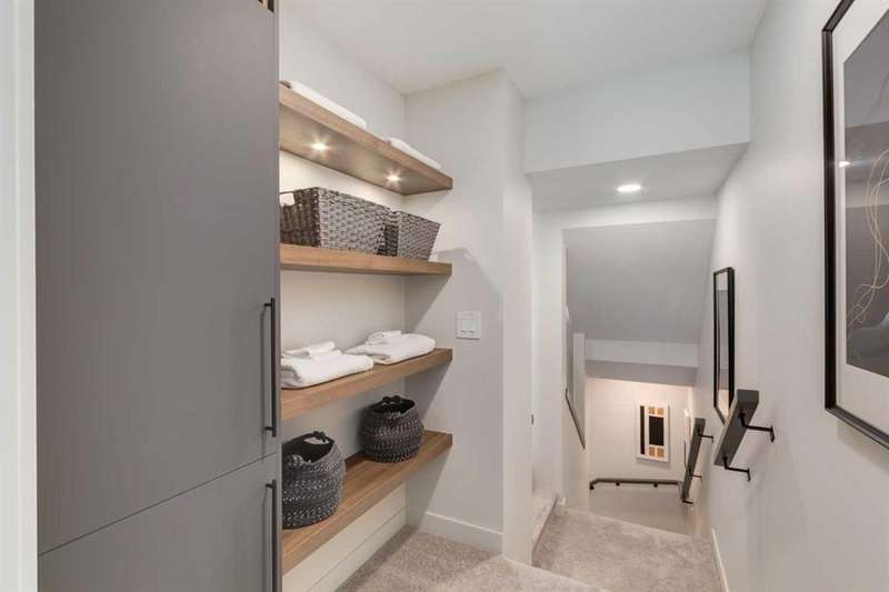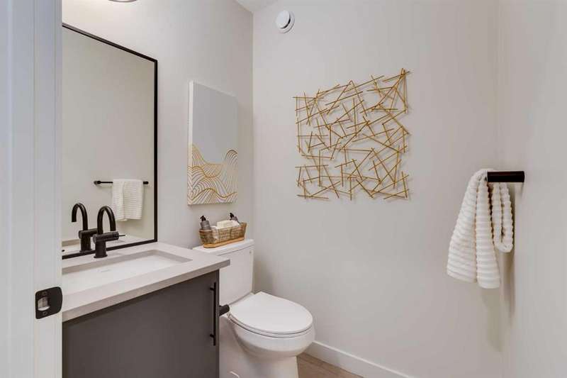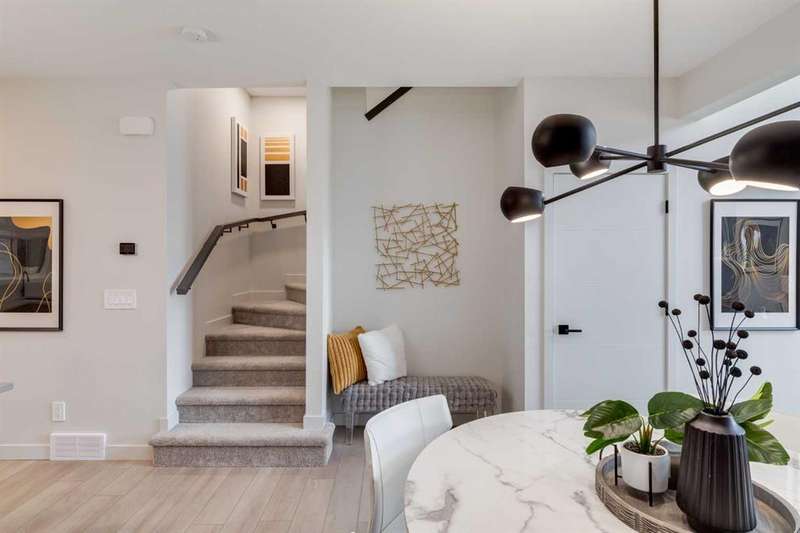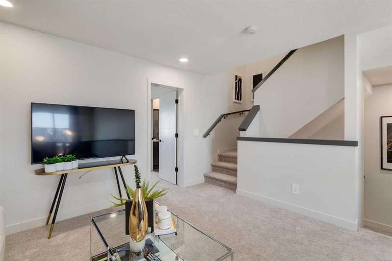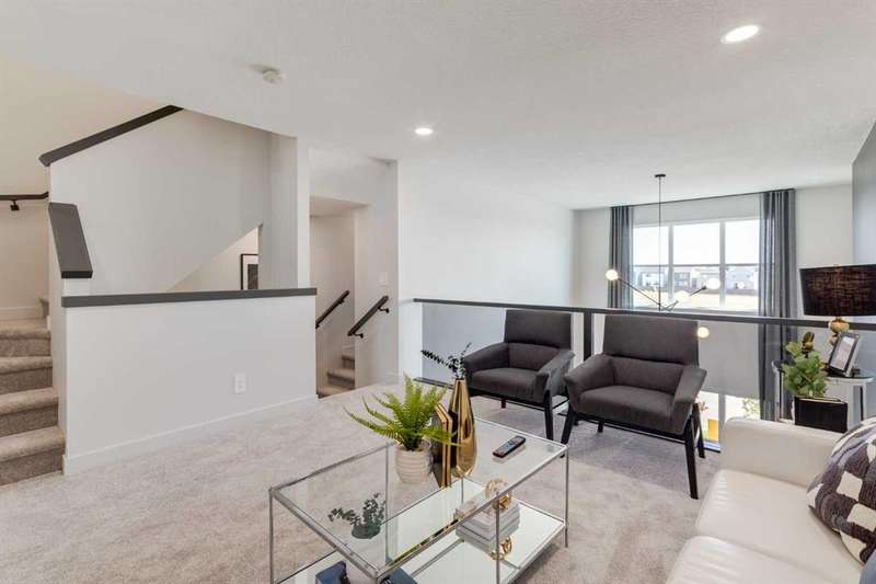 THIS HOME SPENT ITS FIRST YEARS IN THE SPOTLIGHT AS A HOMES BY AVI SHOWHOME. NOW IT’S READY TO TRADE DISPLAY LIFE FOR REAL LIFE WITH ITS FIRST OWNER. The living room itself rises TWO STOREYS HIGH, anchored by a bold painted feature wall with an ELECTRIC FIREPLACE and clean mantle ledge. Windows stack one above another, pulling daylight into every corner. GLASS RAILING from the bonus room above keeps the sightlines open, so even upstairs you feel part of the action. In the kitchen, the details go beyond builder-basic: QUARTZ COUNTERS, a Silgranit undermount sink, GAS RANGE under a CUSTOM HOOD, and a backsplash that climbs full-height around the window. The dining area includes a BUILT-IN CONSOLE that doubles as a hosting tool — the perfect place to serve, set out, or even pull up a stool for extra seating. From here, meals move easily onto the 20’ REAR DECK where the gas line is ready to go. A POCKET OFFICE near the front door gives work and study their own spot, while MUDROOM CABINETRY shoulders the chaos of backpacks, boots, and grocery bags. Upstairs, the bonus room overlooks the living room below. Just outside the laundry room, a wall of FLOATING SHELVES AND BUILT-INS keeps household essentials organized and close at hand. The laundry itself stays simple and contained, while the master offers its own retreat with a walk-in closet and ensuite. The THIRD FLOOR adds two more bedrooms and a bath with a double vanity, plus the rear bedroom includes a WEST-FACING BALCONY — one more way this home builds outdoor living into daily life. And here’s where the “former showhome” part really matters: the extras are already finished. DESIGNER WINDOW COVERINGS are up, UPGRADED LIGHTING is installed, AIR CONDITIONING is running, SPRINKLERS are in the yard, and the landscaping is done. Out back, a full-sized 20’X20’ DETACHED GARAGE is ready, and the curb appeal is set with a wide front porch. No waiting for sod, no living with temporary blinds, no upgrading light fixtures on weekends. This is Rangeview by Section 23, Calgary’s first garden-to-table community. Streets are shaped by orchards, gardens, and gathering spaces, so connection feels built-in from the start. Most new builds begin with a to-do list. This one begins with a head start. Come see how it feels to MOVE INTO A SHOWHOME that’s finally ready to be lived in.