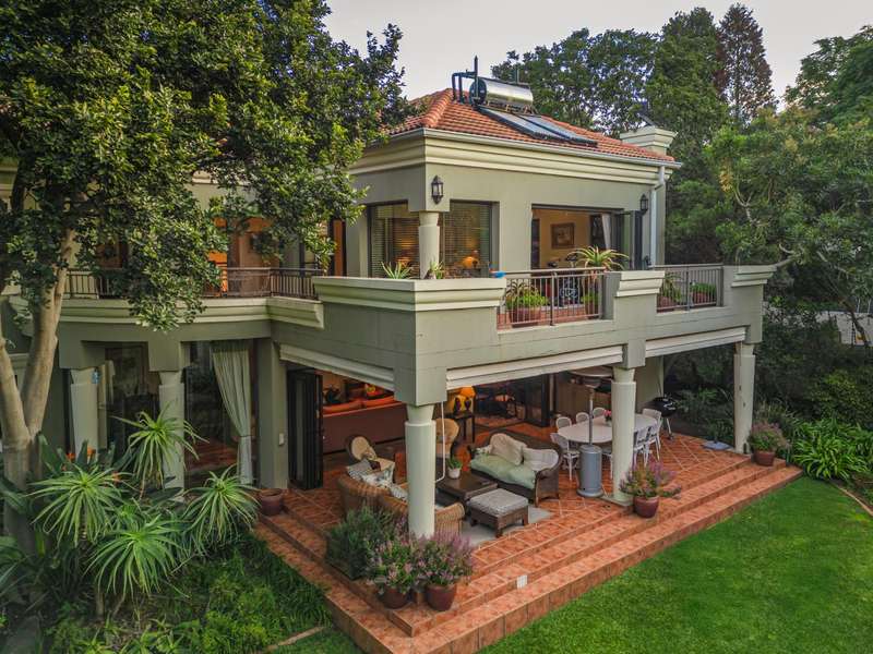 OFFERING AT A NEGOTIATED PRICE; This elegant and adaptable 3-bedroom home, 2 bedrooms in the home and separate studio apartment lies within an exclusive four-home estate in the heart of Bryanston - offering the ultimate in security, privacy, and lifestyle flexibility. 2 Spacious En Suite Bedrooms Upstairs: For a small family or professional couple or downsizing home. A luxurious master suite with wraparound balconies and a walk-in dressing room, plus a second en suite bedroom, filled with natural light. Versatile 3rd and 4th Flatlets with private entrances: A standout feature is the separate en suite studio/bedroom for extended family, teens, guests, rental income, or a private office/meeting room and a further flatlet/staff room, adds incredible value and independence. Triple-Layered Security: Situated in a 24 hour guarded boomed, gated road, with an estate street entrance and a private gate into the home - offering unparalleled peace of mind. Lush, Landscaped Indigenous Garden: Designed to attract birdlife and evoke a tropical retreat, the garden features a water pond, sculpted beds of indigenous flora, and tranquil nooks that reflect an "African Safari" ambiance. Living & Entertaining: Open-plan lounge and dining area, flows to a covered entertainment patio with built-in braai for the ultimate indoor-outdoor entertaining. Gourmet kitchen with gas stove, double oven, plenty storage, and separate scullery. Generous study or home office and a guest toilet complete the downstairs space. Additional Highlights: Separate staff accommodation or potential second flatlet 5,000-litre water backup and grey-water irrigation system Inverter with essential plug-point backup Double garage and ample open secure parking Pet-friendly estate Close to top schools, shopping centres, and main routes This home is the perfect blend of comfort, security, and natural beauty, crafted for family living in one of Bryanston?ÇÖs most sought-after locations.