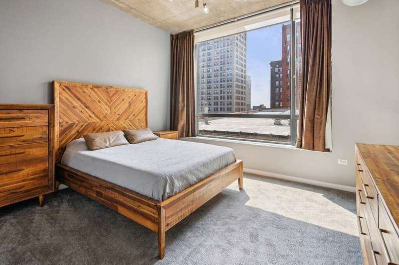 This expansive West facing 2BR/2BA condo combines style, comfort, and convenience located in Library Tower, a premier building in the heart of Printer's Row just steps from the Loop. This home's soaring 11-foot ceilings, hardwood floors, and split bedroom floor plan set the tone for an inviting living space. The thoughtfully designed kitchen features granite countertops, stainless steel appliances, and a large island with seating, seamlessly flowing into the spacious living room. Floor-to-ceiling windows flood the space with natural light and open to an oversized private balcony-perfect for grilling and dining. The versatile floor plan includes a built-in home office in the living room, plentiful closets, a built-in Murphy bed in 2nd bedroom and a washer/dryer. The primary suite is a true retreat with large windows, great closet space, and a private ensuite bath. Library Tower offers 24/7 door staff and full amenities: a fitness center, rooftop deck with panoramic views, business center, movie room, bike storage, and a hospitality suite. Steps to CTA "L" lines and buses, Harold Washington Library, Grant Park, Printer's Row & South Loop restaurants, shopping and entertainment. Also, easily accessible to Roosevelt University, Robert Morris University, Columbia College, UIC and John Marshall Law School. Attached garage parking available for purchase for 25K. Full height storage unit included.