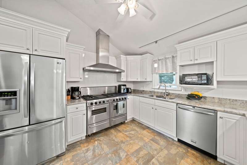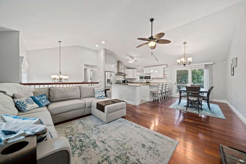 Welcome to Hanover! This 3-bedroom, 3 full bath home offers opportunities for a growing or extended family. The septic installed in 2019. The solar panels paid in full, installed in 2023. The inground pool is enclosed with aluminum black rail. The kitchen boasts a 48" 6 burner chef stove and hood. Stainless steel appliances and white cabinets along with granite counters and island finish the modern look. The open floor plan with slider leading to the deck provides a spacious feel. Vaulted ceilings are in the kitchen, dining and living area. The main bedroom (private bath) with walk-in closet has a vaulted ceiling. The second full bathroom is on this level. The living room with fireplace (see disclosure) has natural light and a vaulted ceiling. The lower level is finished with a full bath, laundry, living space and bedroom. The lower level would also make an in law or au pair suite. The expansive yard and 2 driveways are perfect for large gatherings.
