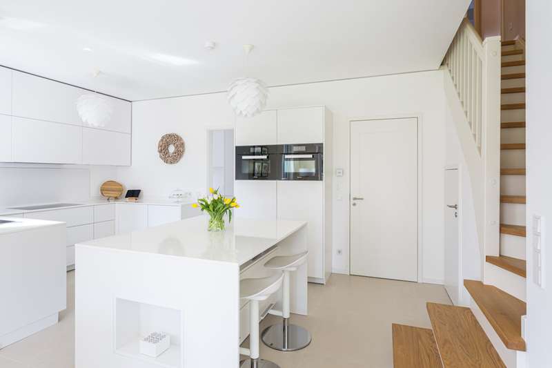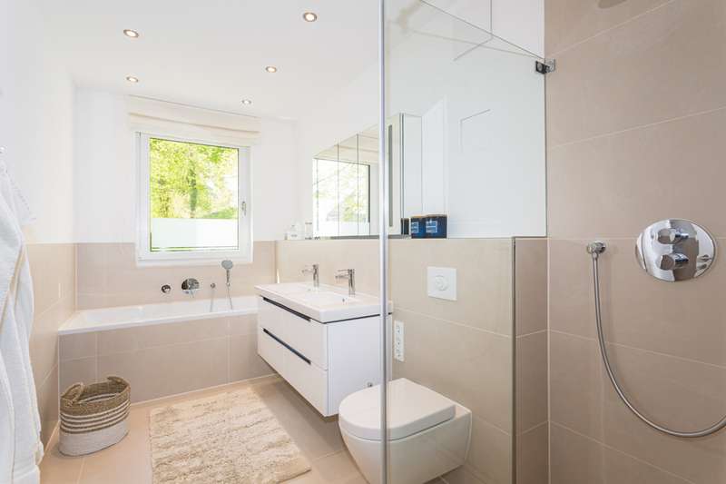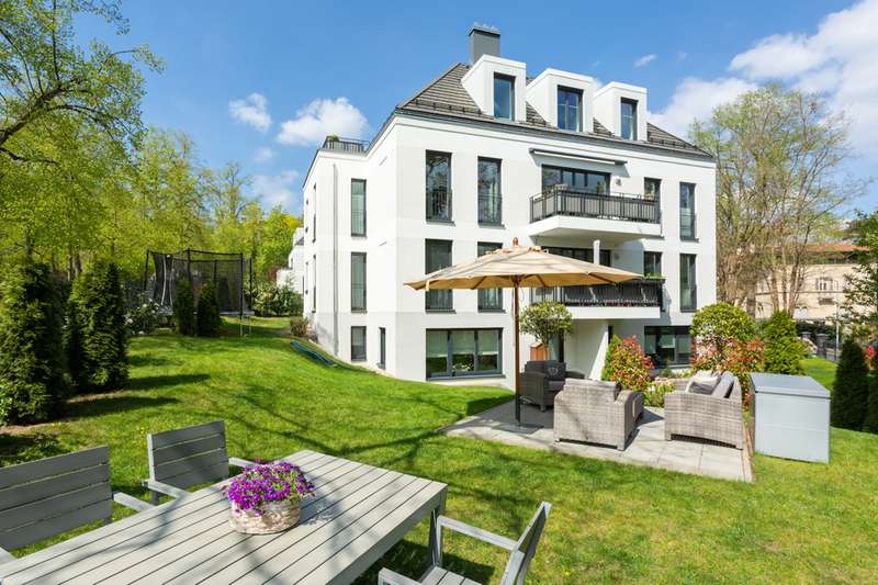 The attractive maisonette apartment, which is offered for rent for a fixed term of four years, extends over the first floor and the garden level and offers a total of 5 rooms. The spacious living area with floor-to-ceiling windows and a beautiful view of the private garden is fitted with bright, large-format tiles. The open kitchen with free-standing unit has a high-quality branded fitted kitchen. A practical utility room is directly accessible from the kitchen. There is also a guest WC and a hallway on this level. The first floor level comprises four rooms with parquet flooring, a spacious full bathroom and a hallway. All living areas have underfloor heating. The energy supply is provided by a modern geothermal heat pump with peak load coverage by a gas condensing boiler, which ensures a high level of energy efficiency. The apartment has a storage cellar and two underground parking spaces, which are already included in the basic rent. The apartment is in a very well-kept condition and offers an exclusive and comfortable living environment for discerning tenants.