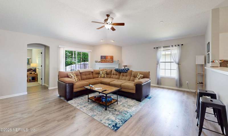 Charming 3-bedroom home with a versatile flex room and 2 full baths! Enjoy luxury plank flooring throughout and cozy up to the wood-burning fireplace in the spacious living area. The kitchen features a breakfast bar, stainless steel appliances, and ample storage. Step outside to a private back patio-perfect for relaxing or entertaining. A 2-car garage adds convenience, and you'll love the amazing neighborhood amenities including parks, pools, and more. This home is move-in ready, full of comfort and charm...