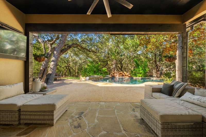 Exceptional Hill Country Living with Privacy, Luxury, and Timeless Charm Nestled in the highly sought-after Village Green community, this beautiful residence offers nearly 4,000 square feet of thoughtfully designed living space on a lush, tree-filled half-acre lot that backs to a serene greenbelt. Surrounded by mature oaks and enhanced by extensive updates and improvements, this home captures the perfect balance of comfort, elegance, and functionality. Highlights & Features Outdoor Oasis Private greenbelt lot with mature oak trees for exceptional privacy Resort-style pool with turtle shelf and waterfall feature Expansive patio and new sun deck area - perfect for outdoor entertaining Mosquito misting system and backyard audio system for added comfort and enjoyment Detached storage building remains with the property Interior Excellence Open-concept floor plan ideal for everyday living and entertaining Tall, vaulted ceilings and custom built-in cabinetry in the living area Elegant rotunda ceilings in the foyer and dining room Plantation shutters throughout Seamless flow between kitchen, breakfast area, and living space. Gourmet Kitchen Large center island with abundant storage and seating Gas cooktop and stainless-steel appliances Oversized pantry and extensive custom cabinetry Recently added sliding glass doors and picture window fill the home with natural light and create a true indoor-outdoor connection Private Primary Retreat Expansive primary suite with private access to the backyard and pool Spa-inspired bath with walk-in shower, soaking tub, and dual vanities Generous walk-in closet with custom organization Upstairs Addition New guest suite with private bath Media room with large drop-down movie screen - ideal for family nights or entertaining Additional bathroom and flexible space for guests or hobbies Additional Features Tankless water heater Reverse osmosis system and water softener Three-car garage with epoxy flooring and built-in storage Laundry room with sink, desk area, and secondary entrance from the driveway Key Details 5 Bedrooms - 5 Baths Approx. 3,969 SQFT Over Half-Acre Lot Extensive Home Improvements & Upgrades Village Green Community - Convenient to Downtown Boerne and I-10 Investment in Quality More than $160,000 in recent upgrades and improvements, including flooring, lighting, additions, pool enhancements, outdoor features, and mechanical systems - ensuring comfort, efficiency, and lasting value - 11/27/2025 8:15:16 PM