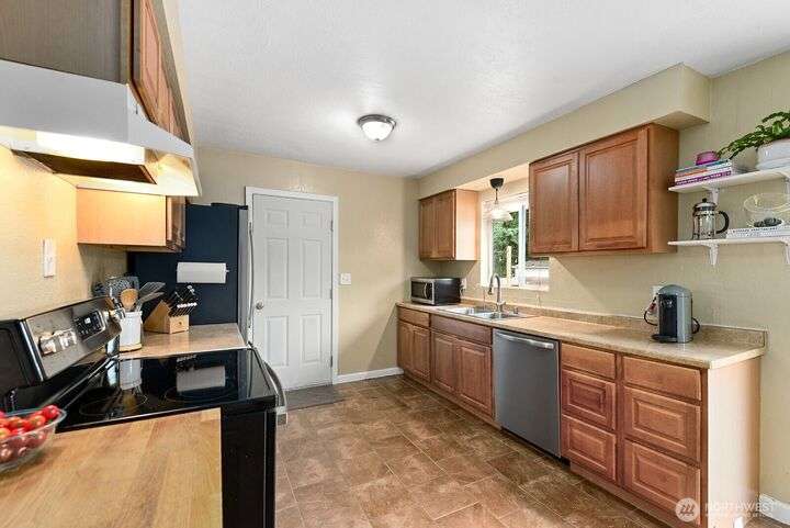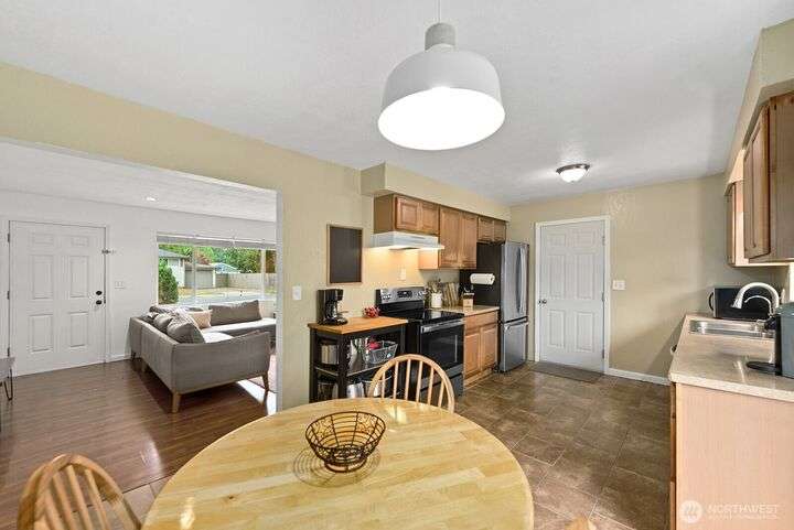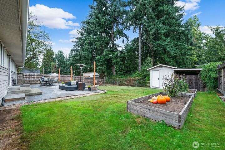 Adorable, well-loved & efficient one-level living in Burien. The living room gets oodles of natural light & has a fireplace to warm up your Winters. Three good sized bedrooms with hardwood floors and a big bathroom with double vanity sinks. The kitchen has a newer stove & dishwasher, ample cupboard & counter space, plus a HUGE pantry. Sizeable dining room with sliders to the back. You're going to love the fully fenced rear yard with patio, raised garden beds, large deck, & big shed for your garden supplies. The extra-long garage fits your car & has plenty of storage including an easy lofted option. New roof in 2022! Pre-inspected for your convenience. Square footage does not include garage-home lives big with remarkable storage!