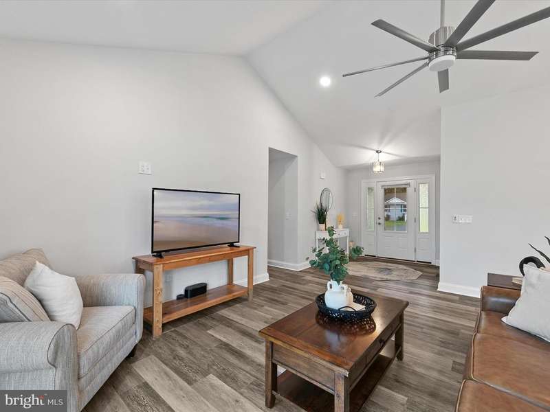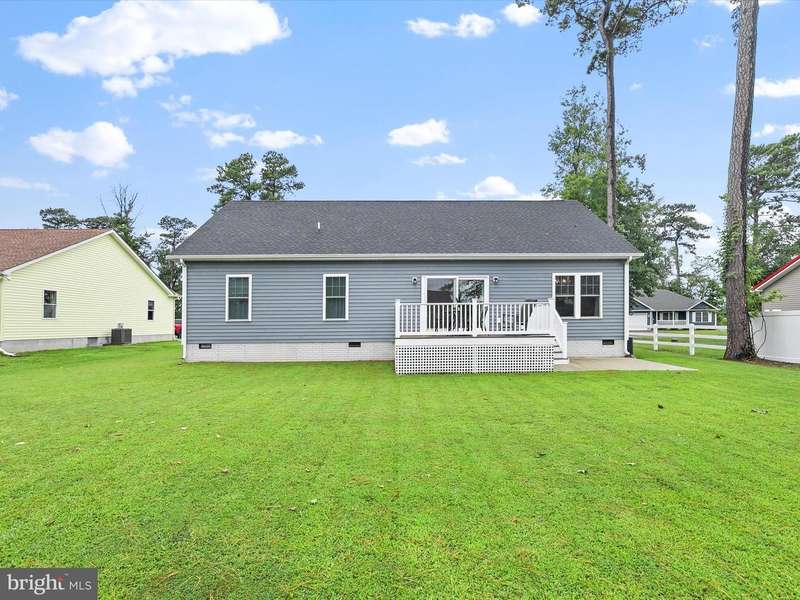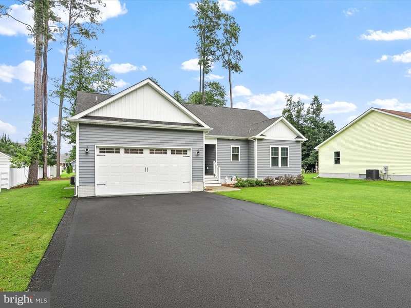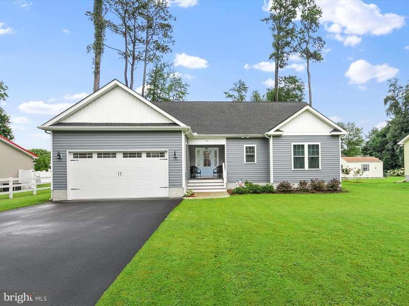 Welcome to 131 Prince Georges Drive - A Coastal Ranch Retreat Nestled within the beautiful community of Prince George's Acres, this nearly new coastal-style ranch home, built in 2022, combines thoughtful design with timeless finishes to create a space that is as stylish as it is comfortable. From the moment you arrive, the welcoming entry sets the tone, inviting you to step inside and discover a home filled with natural light and coastal sophistication. Architectural details and an open floor plan are complemented by lofty windows, soaring ceilings, wide plank luxury vinyl flooring, and designer tile accents, all unified by a tasteful color palette that flows seamlessly throughout. The generously sized living room unfolds effortlessly into the dining area, offering easy access to the elevated deck and the tranquil outdoor setting that awaits. Open to the dining space, the gourmet kitchen is a true centerpiece, boasting white shaker-style cabinetry, gleaming granite countertops, stainless steel appliances, pendant lighting, and a center island with breakfast bar, perfect for both everyday meals and entertaining. Just off the kitchen, a substantial laundry and storage area, and interior access to the garage. Tucked at the end of the hallway, the light-filled primary suite offers a peaceful retreat, complete with a walk-in closet and a spa-like ensuite featuring a dual vanity and custom-tiled shower. Across the hall, two additional bedrooms, each bright and inviting, share a beautifully appointed full bath, providing comfortable accommodations for family and guests alike. Step outside to the elevated deck and imagine creating your own backyard oasis. With plenty of green space, this versatile yard is ready to host play areas, dining and grilling stations, or even a garden to suit your lifestyle.