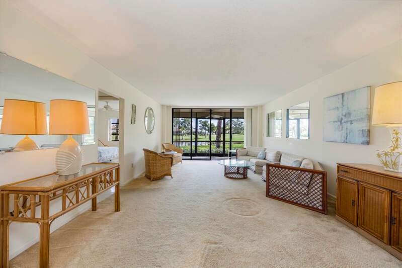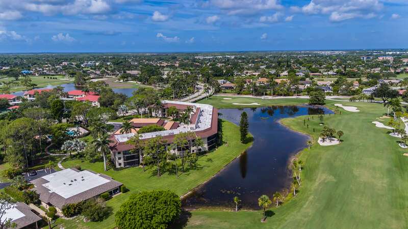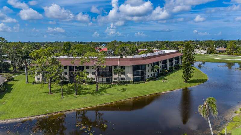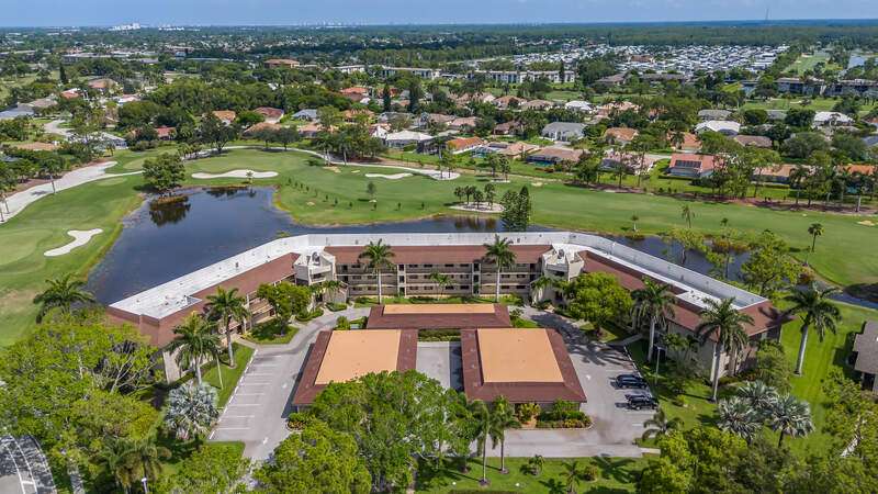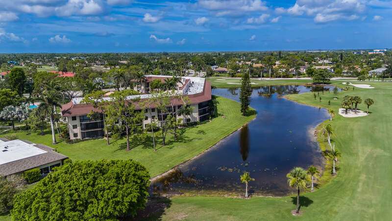 Discover Florida living at its finest in this spacious 1st-floor, 2-bedroom, 2-bath condo in the heart of Lely Country Club! Spanning 1,390 sq ft, this bright and airy residence boasts stunning golf course and pond views from nearly every room, framed by lush banyan trees and natural wildlife. The open split floor plan features a large living room with sliders to a private screened lanai, a separate dining area, and an eat-in kitchen. Convenience abounds with an in-unit washer and dryer, a newer A/C (2021), assigned covered carport, ample guest parking, and an extra-large storage unit. New roofs are scheduled for installation next year. Nestled in a beautifully landscaped community with just 36 units, residents enjoy exclusive amenities, including a private pool and spa, a screened social area with restrooms, and elevator access. Additional perks include a mailbox near the elevator and a spacious storage unit. Perfectly located minutes from Naples' pristine beaches, vibrant 5th Avenue, top-tier restaurants, and shopping, this condo offers unmatched convenience and coastal charm. Ideal for buyers or investors, this original condo is a blank canvas ready to be transformed into a modern dream home. Virtually staged photos provide inspiration for its endless potential. One of the best values in Lely Country Club, this move-in-ready gem delivers the Naples lifestyle you've been dreaming of.