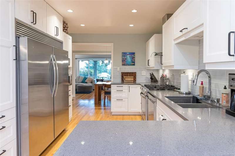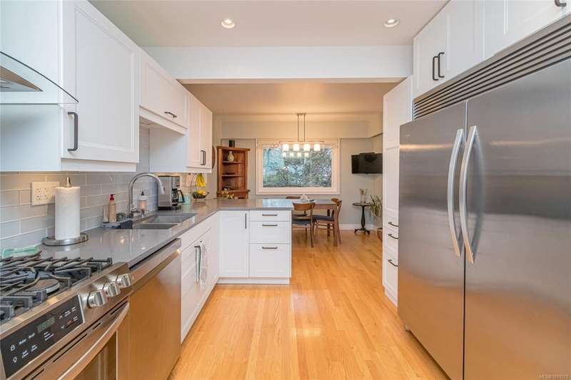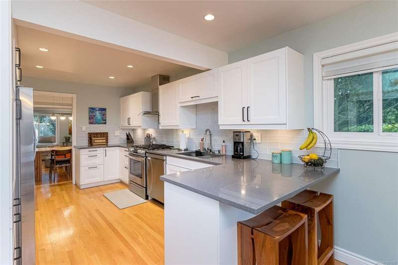 OPEN SUN JUL 27 1-3pm. Completely updated, move-in-ready 3BR/2bath home with legal 1BR/1bath suite ideally situated at the end of quiet cul-de-sac. Central location with easy walking access to Uptown, Mayfair, bus stops, parks and more. Inside, the main living level features gleaming hardwood floors throughout, with a large living/dining room and gas fireplace, spacious modern kitchen w quartz counters, oversized fridge, with separate eating area. Primary BR with new ensuite, second BR and huge new bathroom. Downstairs has a large family room with attached 3rd BR (or Den/Office?) and utility room. The legal 1BR suite with separate entrance would be great for mortgage help or AirBnB! Close to the Galloping Goose trail for easy commutes, Swan Lake Nature Reserve, schools, playgrounds and shopping at Up-Town mall. An ideal Saanich core location! There is even long-term development potential given the size of the lot. Don't miss your chance to own this beautiful centrally located home!