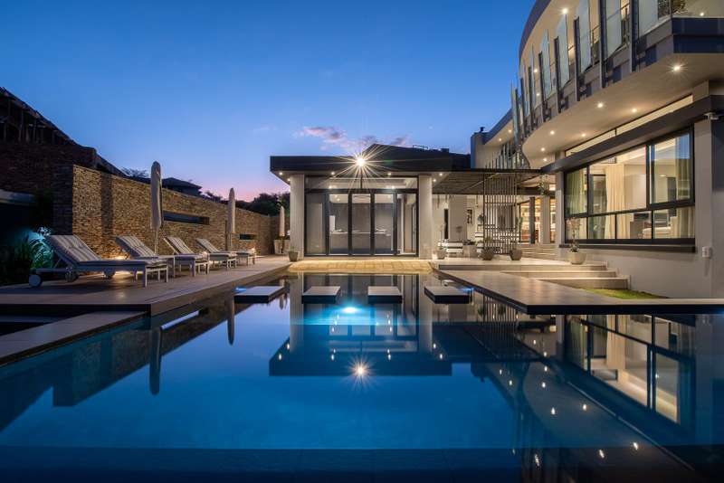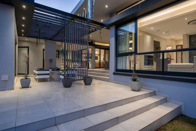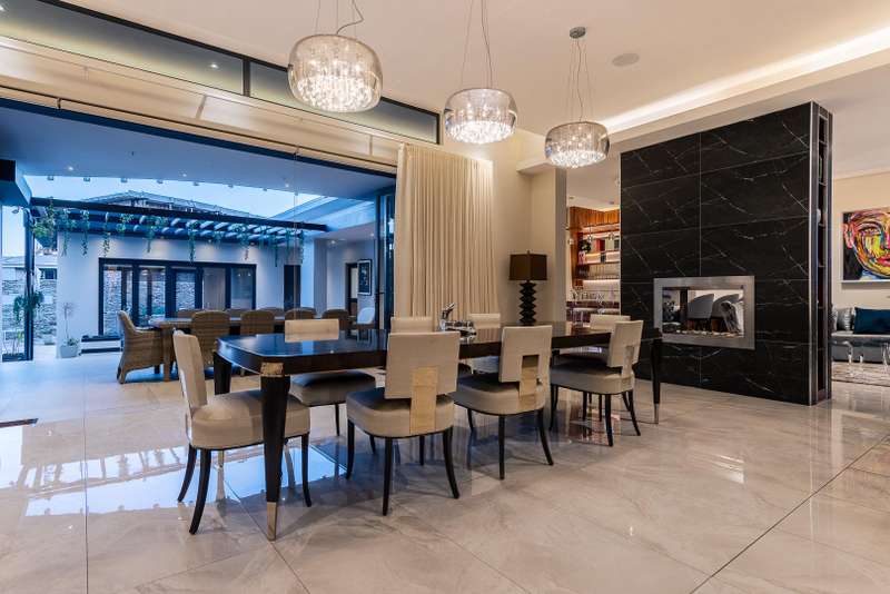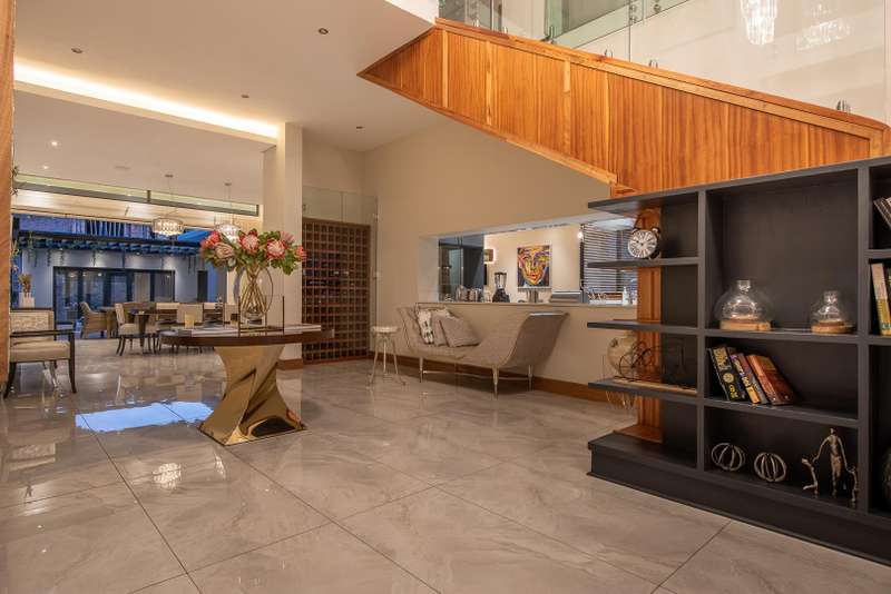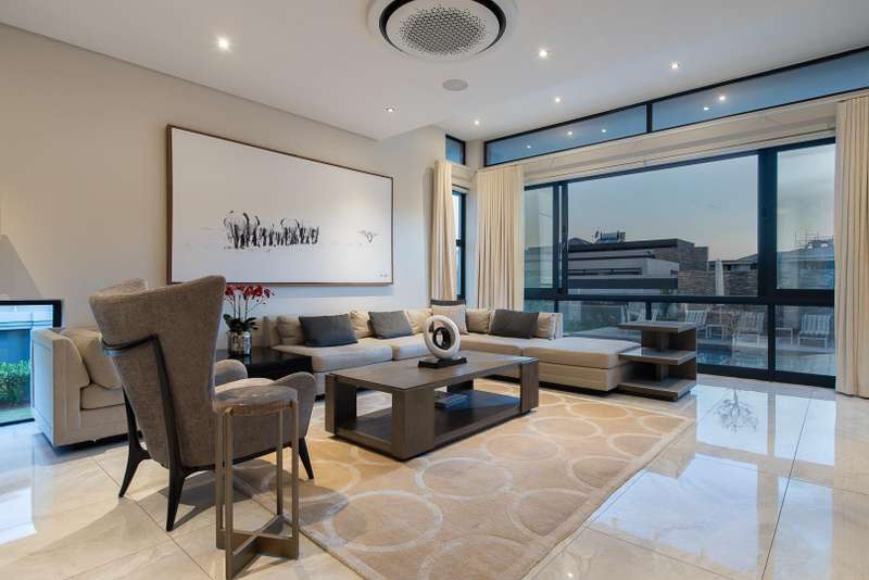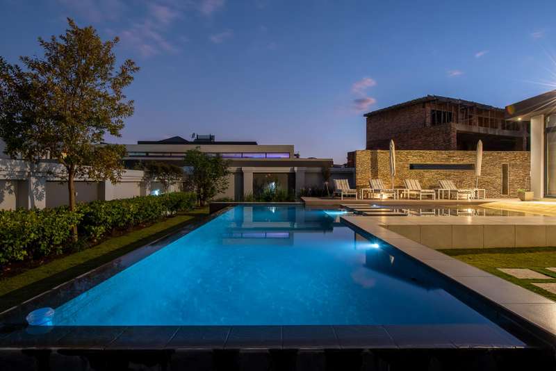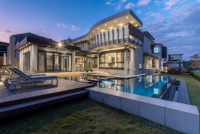 Location, Prestige Nature & Eco Estate, Architecturally Designed Master Built, Family Home & Entertainers Dream. With the use of quality Materials by the best builders in the business, An unmatched Architectural design that affords you effortless flow, allowing natural sunlight to highlight the homes natural beauty from the grand entrance, lit with grand Chandeliers to the formal lounge that opens to the patio and outdoor Pergola, A wine rack with entrance seating for guests to enjoy some delicious Pinot noir. A guest powder room/guest loo, guest bedroom en-suite, TV lounge with blue marble feature wall looking out to gorgeous landscaped gardens, open plan dining bar, living area with a well positioned fireplace for seperation. World class and gourmet chefs kitchen with miele deep fryer, griller, gas stove, oven, microwave complimented with scullery and pantry round off the ground floor living features. A seemless indoor outdoor flow takes you from inside perfection and class to outdoor paradise with eat out dining, boma, built in gas braai, outdoor elegant bathroom with shower and toilet, outdoor cinema and entertainment area with surround sound and projector screen where door stacks open to a beach entry to infinity swimming pool surrounded by rolling green lawns. Lets take you upstairs to Presidential accommodation, 4 oversized bedrooms all luxuriously en-suite with features and fittings that can only be described as class 5 star Hotel suites do not compare. Pyjama lounge with gas fireplace, gym, sauna, study and balconies complete the upstairs level. Full Home automation, aircons throughout, central vacuum, surround sound, cameras, staff accommodation, mounted generator, inverter system with solar panels, pool heat pump, 4 garages with direct access to the home and more. Call for exclusive viewing. *Extreme care has been taken to ensure that all representations contained in this advertisement are accurate and is provided on an ?Ç£as is?Ç¥ basis with no guarantees whatsoever. The representations herein has not been compiled to meet a Purchaser?ÇÖs individual requirements and it remains the Purchaser?ÇÖs sole responsibility to inspect the property duly prior to entering into any purchase agreement. The representations herein does not constitute the terms of sale as the images and descriptions are merely indicative. Chas Everitt assumes no responsibility for any errors and we reserve the right to correct/change/update the advert at any time without prior notice.*