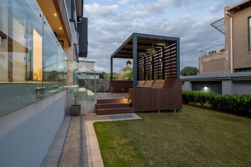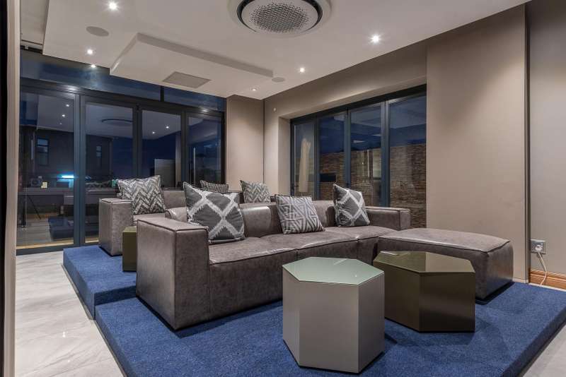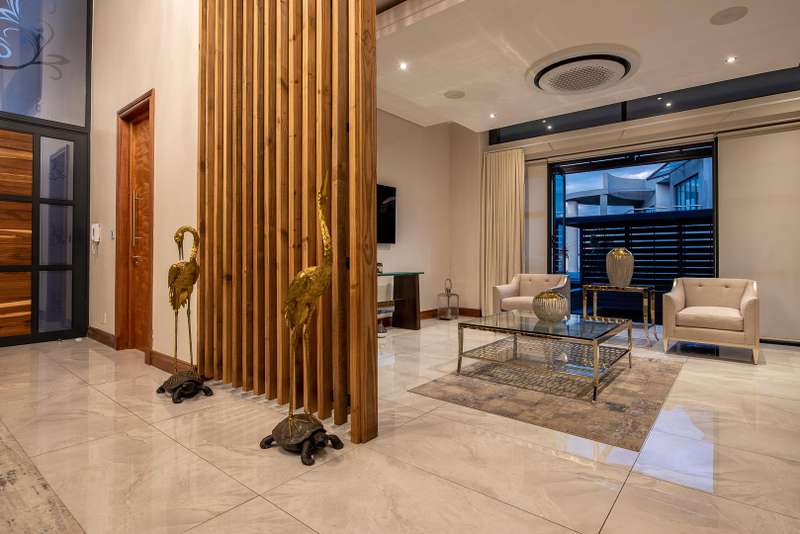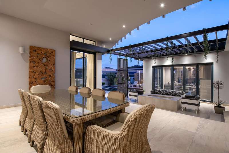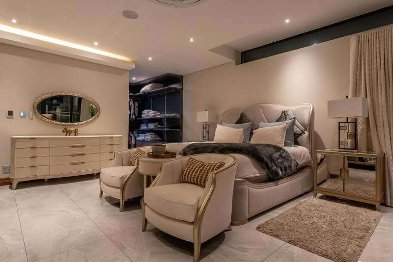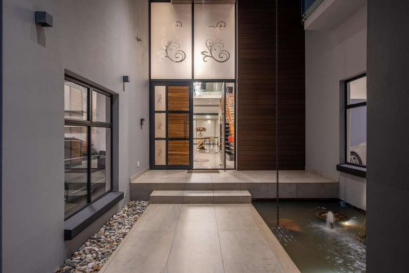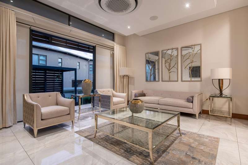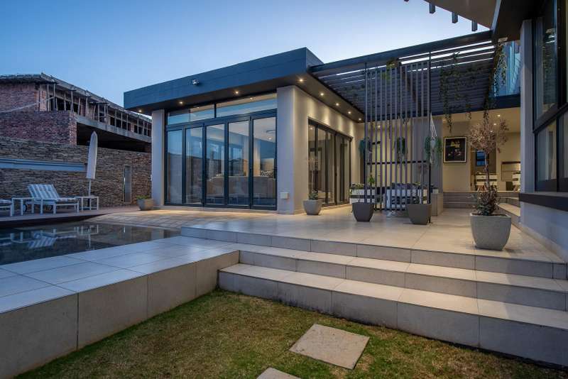 Location, Prestige Nature & Eco Estate, Architecturally Designed Master Built, Family Home & Entertainers Dream. With the use of quality Materials by the best builders in the business, An unmatched Architectural design that affords you effortless flow, allowing natural sunlight to highlight the homes natural beauty from the grand entrance, lit with grand Chandeliers to the formal lounge that opens to the patio and outdoor Pergola, A wine rack with entrance seating for guests to enjoy some delicious Pinot noir. A guest powder room/guest loo, guest bedroom en-suite, TV lounge with blue marble feature wall looking out to gorgeous landscaped gardens, open plan dining bar, living area with a well positioned fireplace for seperation. World class and gourmet chefs kitchen with miele deep fryer, griller, gas stove, oven, microwave complimented with scullery and pantry round off the ground floor living features. A seemless indoor outdoor flow takes you from inside perfection and class to outdoor paradise with eat out dining, boma, built in gas braai, outdoor elegant bathroom with shower and toilet, outdoor cinema and entertainment area with surround sound and projector screen where door stacks open to a beach entry to infinity swimming pool surrounded by rolling green lawns. Lets take you upstairs to Presidential accommodation, 4 oversized bedrooms all luxuriously en-suite with features and fittings that can only be described as class 5 star Hotel suites do not compare. Pyjama lounge with gas fireplace, gym, sauna, study and balconies complete the upstairs level. Full Home automation, aircons throughout, central vacuum, surround sound, cameras, staff accommodation, mounted generator, inverter system with solar panels, pool heat pump, 4 garages with direct access to the home and more. Call for exclusive viewing. *Extreme care has been taken to ensure that all representations contained in this advertisement are accurate and is provided on an ?Ç£as is?Ç¥ basis with no guarantees whatsoever. The representations herein has not been compiled to meet a Purchaser?ÇÖs individual requirements and it remains the Purchaser?ÇÖs sole responsibility to inspect the property duly prior to entering into any purchase agreement. The representations herein does not constitute the terms of sale as the images and descriptions are merely indicative. Chas Everitt assumes no responsibility for any errors and we reserve the right to correct/change/update the advert at any time without prior notice.*