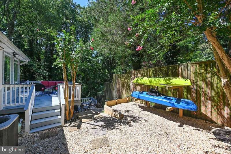 Here's an incredible opportunity to own a charming cottage that has been thoughtfully renovated in the water-access community of Herald Harbor. Even the first look is a winner, with a yard that has been transformed into a lush garden. Inside, natural light pours through walls of windows in the great room, blending the views of mature trees with filtered sunlight. The great room combines a spacious living room with a dining area that is perfect for entertaining. The mantle over the gas fireplace has pretty detailing and the built-in bookshelves flanking it are striking. Step out to the wrap-around deck, or a new staircase was installed to access the walk-out lower level. The updated kitchen features a vaulted ceiling, skylight and plenty of storage. Two bedrooms and an updated full bath are conveniently located on the main level. There's new luxury vinyl plank flooring through the main level. Downstairs you'll find a flexible living space, perfect for a home office, exercise area, or family room. The spacious third bedroom has direct outside access and has great closet space. The full bath and laundry have also been recently updated. Step out to the deck and fenced yard with outdoor lighting. There's a private access path from the yard to the community road with beach access just a short walk. It's easy to enjoying swimming, boating, and Severn River views. Recent improvements by the current owners include new flooring, custom staircase, upgraded bathrooms, extensive hardscape and professional landscaping. Herald Harbor is a voluntary HOA and offers a boat ramp, playground and basketball court. This is the perfect combination of renovated home, water-access community, and super location -- easily accessible to Baltimore, DC, Annapolis or Ft. Meade. OFFER DEADLINE Monday September 8 at 6:00 PM
