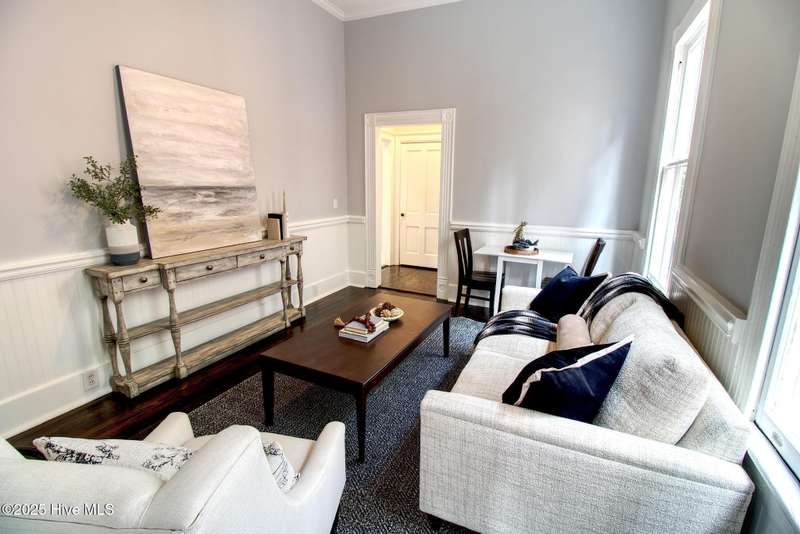 Looking for an investment property or a home of your own? Step into timeless elegance with this beautifully restored historic gem! Located in the heart of the Historic District, in one of Wilmington's most recognizable homes, this beautiful first floor condo has been tastefully renovated with elegance, style and an appreciation for its era and architectural details preserved. This condo boasts 2 large, sundrenched bedrooms with decorative fireplaces, 2 new bathrooms with fully tiled walk-in showers and a stunning new kitchen. All new Stainless steel appliances convey, including a washer/dryer combo. This condo has been freshly painted, hardwood floors sanded and stained, and tile floors laid in the kitchen and bathroom. Striking new fixtures throughout. No detail has been overlooked! Make this home yours and soon you'll be sitting on the spectacular front porch watching the horse-drawn carriages pass by. Plus, you are in walking distance to the Riverwalk, great restaurants and shops!