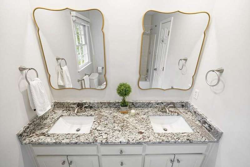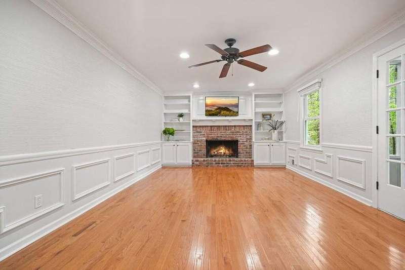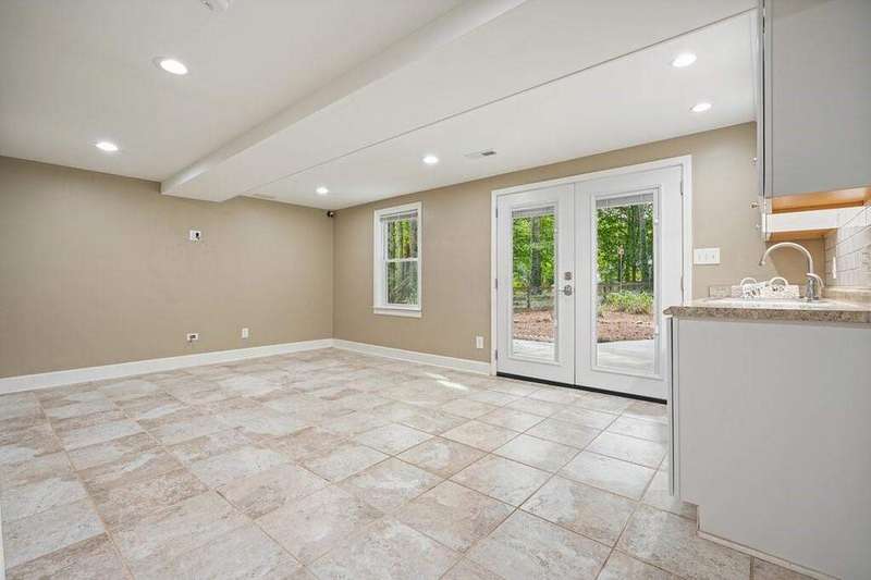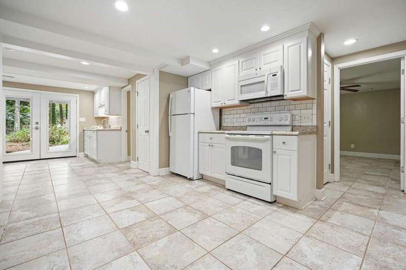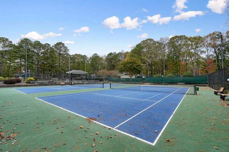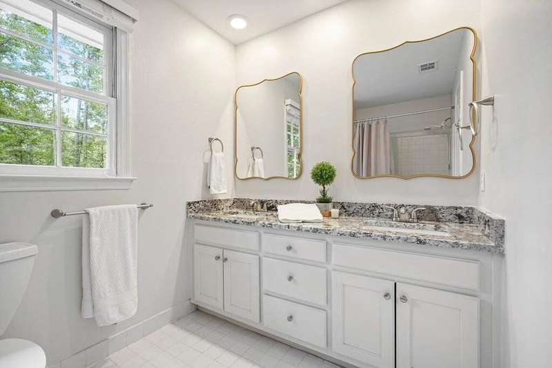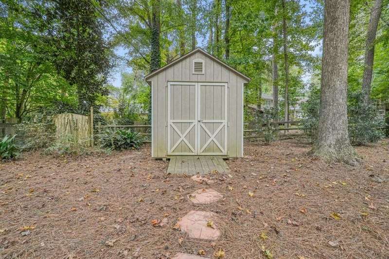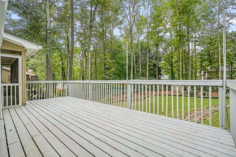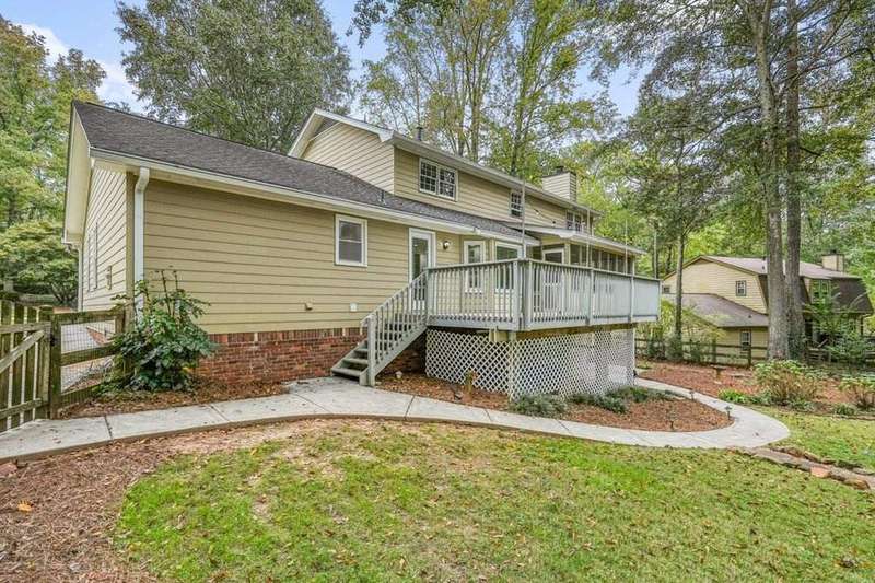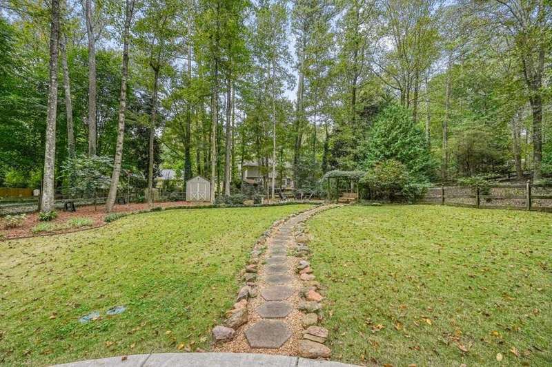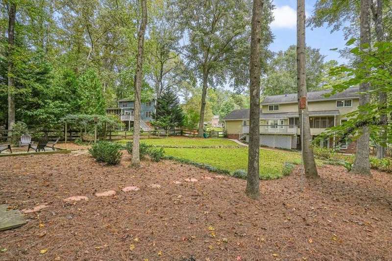 This is the home you've been waiting for! Brick beauty in the heart of East Cobb/Pope HS district with walkability to Tritt ES school and all of the amazing amenities that Chimney Springs offers - playground, pool, tennis courts, clubhouse and lake! Special features include flat half acre lot, two fully equipped kitchens and two equipped laundry areas! Newer, extended driveway with parking pad and sidewalks make a good first impression to welcome guests. Backyard gate opens to a park-like lawn with stone paths leading to a vine shaded swing, built-in firepit and solid storage shed, with multiple zone irrigation system, Rainbird timer and path lighting. A nice deck and screen porch overlook the scenic yard. An updated sunny white kitchen has stone counters, gas range, framed vent hood, large island and pantry. It will be a pleasure to spend time in a spacious laundry room adjacent to the kitchen, with a second walk-in pantry and a roomy built-in table with a stone top, ideal for folding clothes, wrapping gifts or other projects. Hardwood floors run through the main level living & dining spaces. Primary suite and 3 secondary bedrooms are located on second floor. Primary bath features a newer vanity with stone top and frameless glass shower. The secondary bath is a generous size with double sinks, stone counter top and 2 decorative mirrors. Basement is completely finished and could be a guest suite / apartment boasting a full kitchen, living area, bedroom, flex room, full bath and the second laundry area. Exterior entrance is a step-out to the patio with a newer double door with built-in blinds. Great location, sought after school district, amenity-rich community, park-like backyard, 2 fully equipped kitchens, 2 laundry rooms with washers & dryers, spacious & bright living spaces - this home has it all!