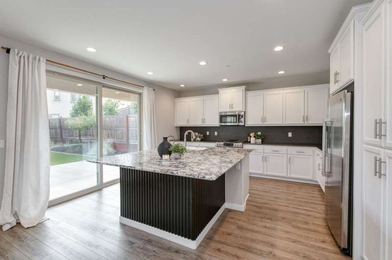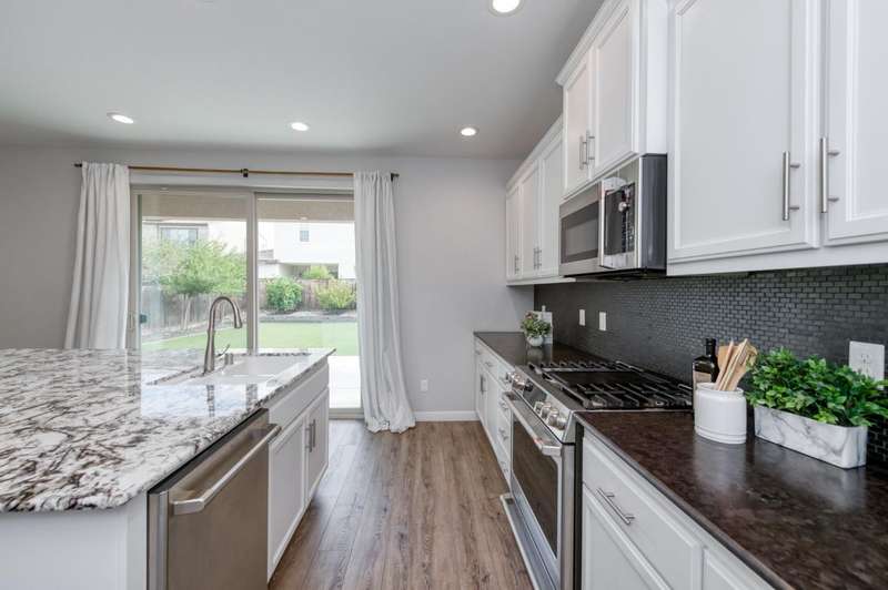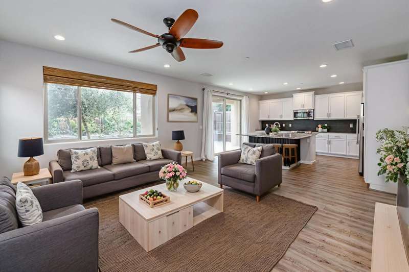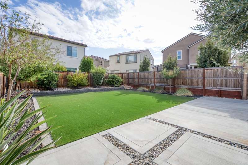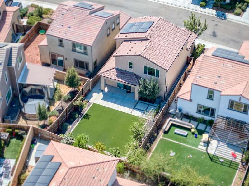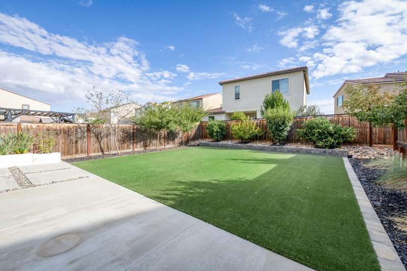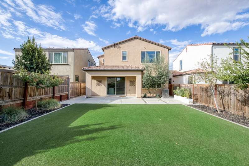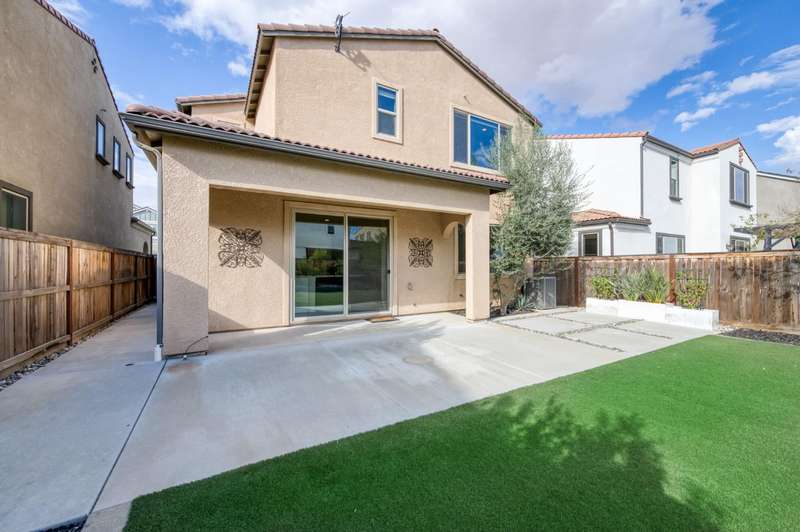Discover this beautiful 1581 sq ft home with two-bedrooms, two-and-a-half-baths & a versatile office/den, set within the nationally acclaimed master-planned community of Tesoro Viejo in Madera. Framed by the Sierra foothills and near the San Joaquin River, Tesoro Viejo offers a lifestyle like no other with scenic walking trails, neighborhood parks, a resort-style clubhouse, pool, gym, and even a community cafe. This thoughtfully designed home welcomes you with a tile roof and lush professional landscaping, including a large backyard with synthetic lawn and extended patio space perfect for entertaining or relaxing under the stars. Inside, the kitchen is the heart of the home with slab countertops, designer tile backsplash, & GE Cafe stainless appliances, all enhanced by abundant natural light. Beautiful wood laminate floors flow throughout the main level, while upstairs features upgraded carpet in the bedrooms. Offering style, comfort, and connection, this home is your chance to experience the best of Tesoro Viejo living. You are going to love where you live!