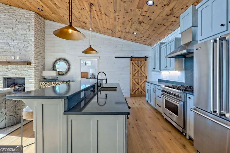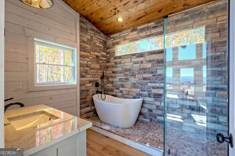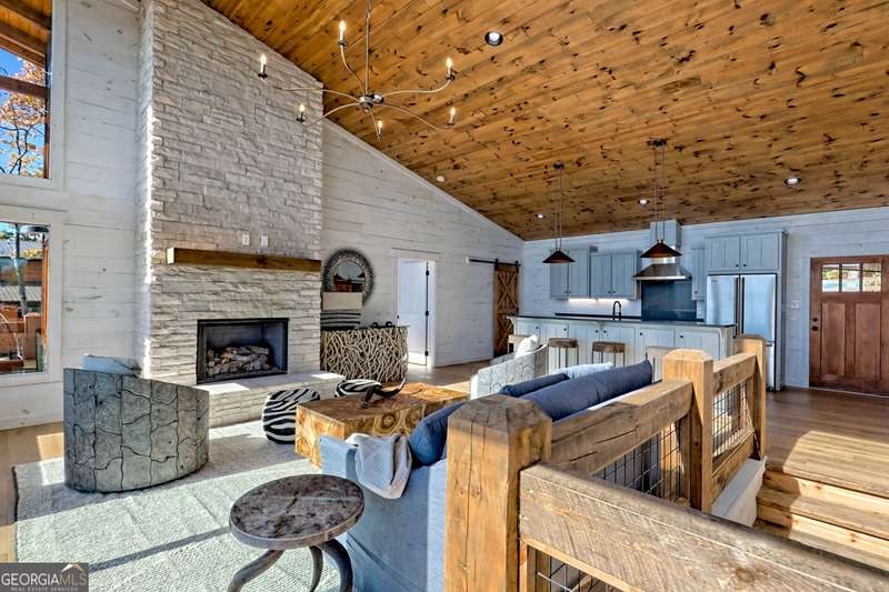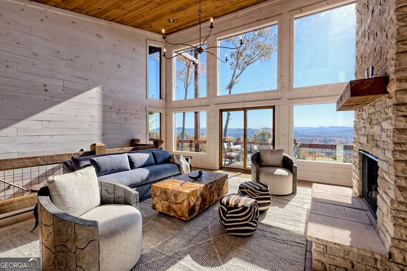 Perched in the peaceful North Georgia mountains, 530 Tower Road in Mineral Bluff offers the perfect blend of modern elegance. This stunning, designer furnished 4-bedroom, 4.5-bath home boasts an open, airy layout with vaulted ceilings and expansive windows that fill the home with light while framing the incredible long range views. The kitchen is a chef's dream, complete with high-end appliances and custom finishes, ideal for both everyday cooking and entertaining. The spacious great room, centered around a cozy fireplace, provides the perfect spot for gathering with friends and family. Step outside to the sprawling deck, where the fresh mountain air and gorgeous views create a peaceful retreat for relaxation or outdoor entertaining. Two primary suites on the main level offer spa-like amenities and access to the outdoors, while the additional 2 bedrooms each have their own en-suite baths, providing privacy and comfort for family and guests. With proximity to world-class hiking, trout fishing, and the charming town of Blue Ridge, 530 Tower Rd is a mountain retreat where luxury meets nature, perfect for both relaxation and adventure.